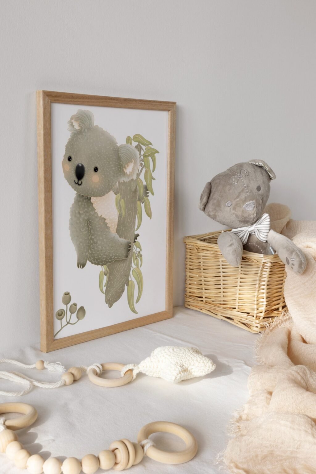 Our Australian Animals Prints, koala Baby, Koala Nursery set of 1, soothing colors, and heartwarming quotes that are bound to bring joy and comfort to your baby’s room. Each print is thoughtfully crafted to add a touch of magic and wonder, making it an ideal gift for new parents or a special treat for your own bundle of joy.