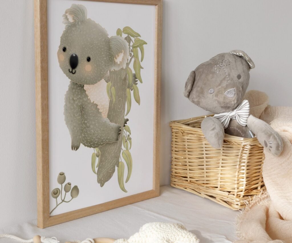 Australian Animals Prints, koala Baby, Koala Nursery set of 1