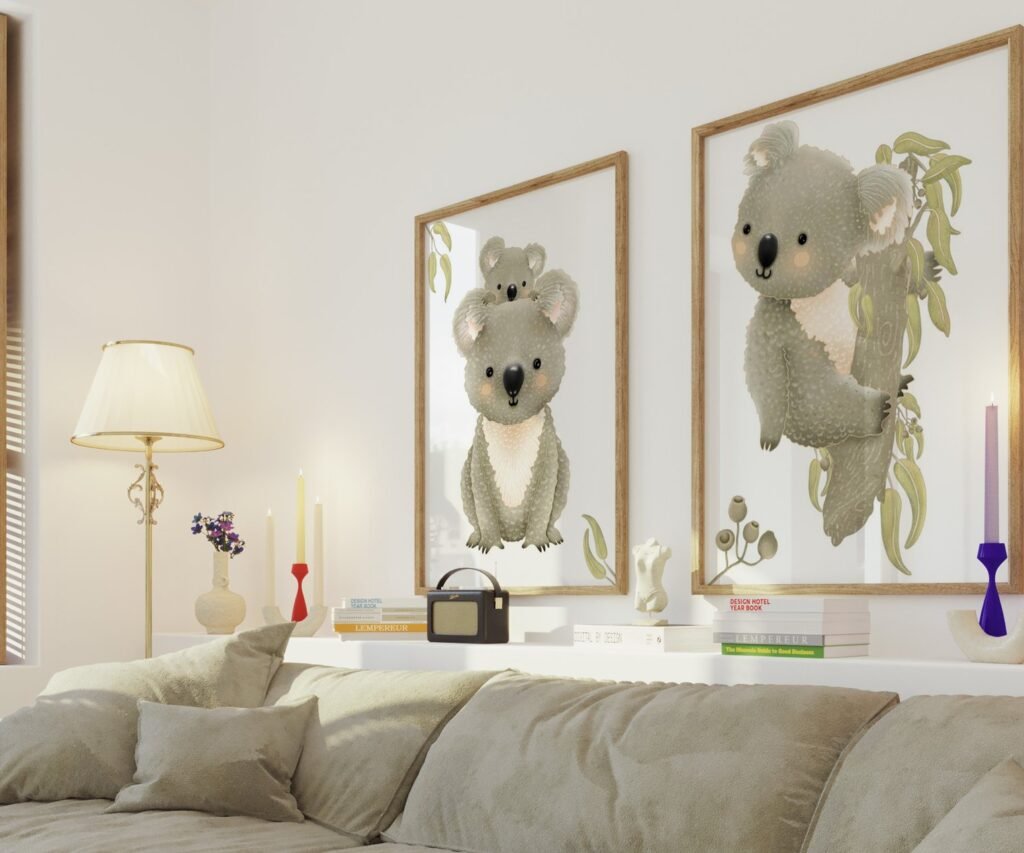 Our Australian Animals Prints, koala Baby, Koala Nursery set of 2, soothing colors, and heartwarming quotes that are bound to bring joy and comfort to your baby’s room. Each print is thoughtfully crafted to add a touch of magic and wonder, making it an ideal gift for new parents or a special treat for your own bundle of joy.