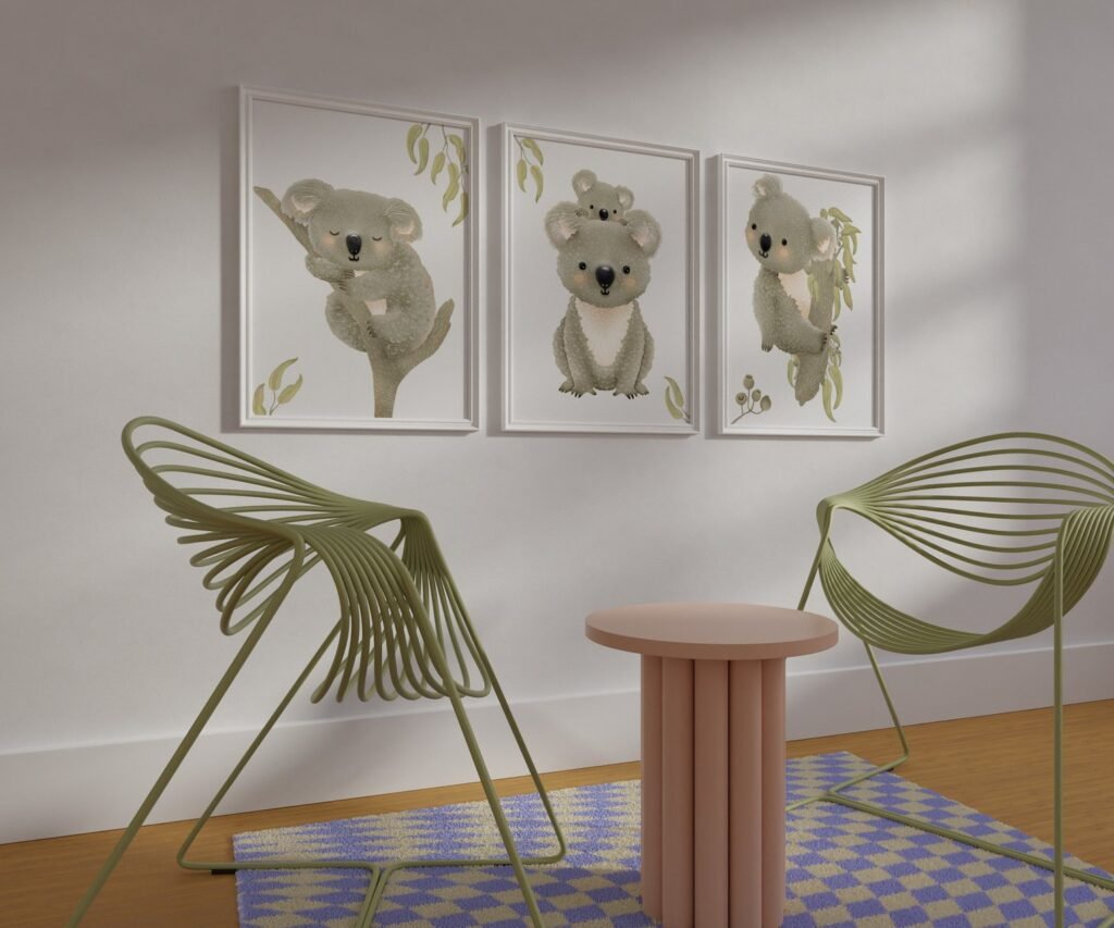 Our Australian Animals Prints, koala Baby, Koala Nursery set of 3, soothing colors, and heartwarming quotes that are bound to bring joy and comfort to your baby’s room. Each print is thoughtfully crafted to add a touch of magic and wonder, making it an ideal gift for new parents or a special treat for your own bundle of joy.