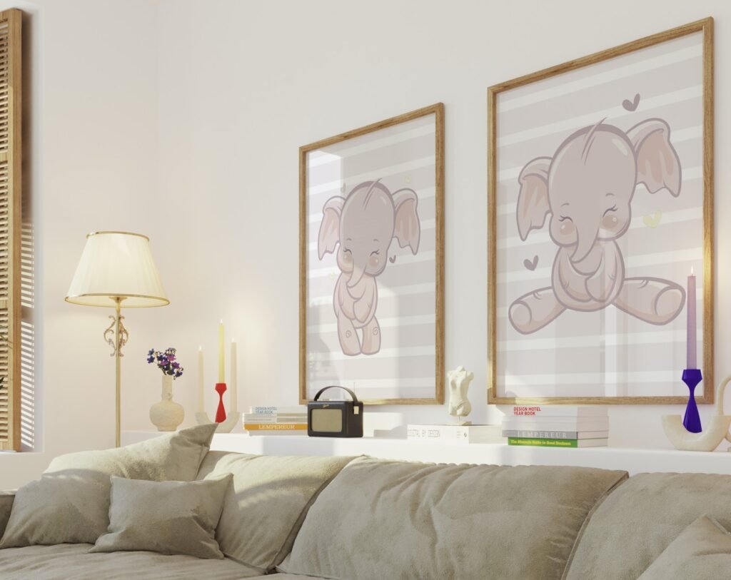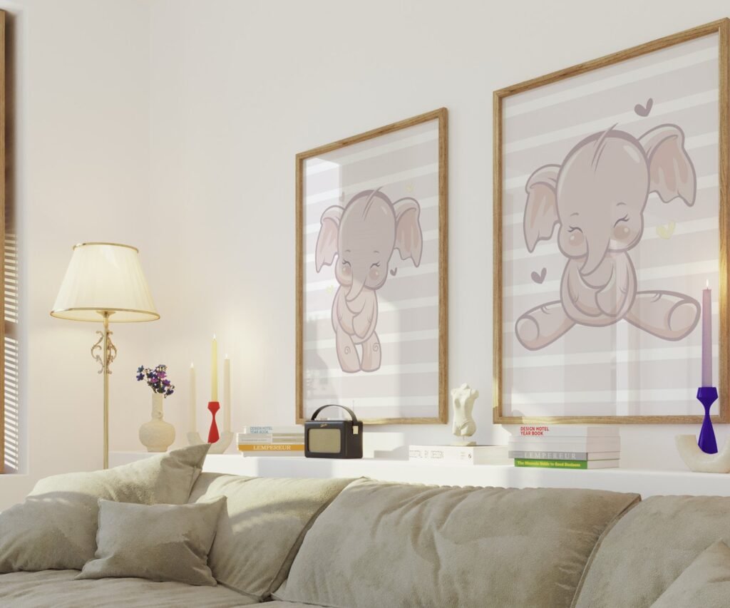 Baby Elephant family Art, Posters Gender Neutral set of 2