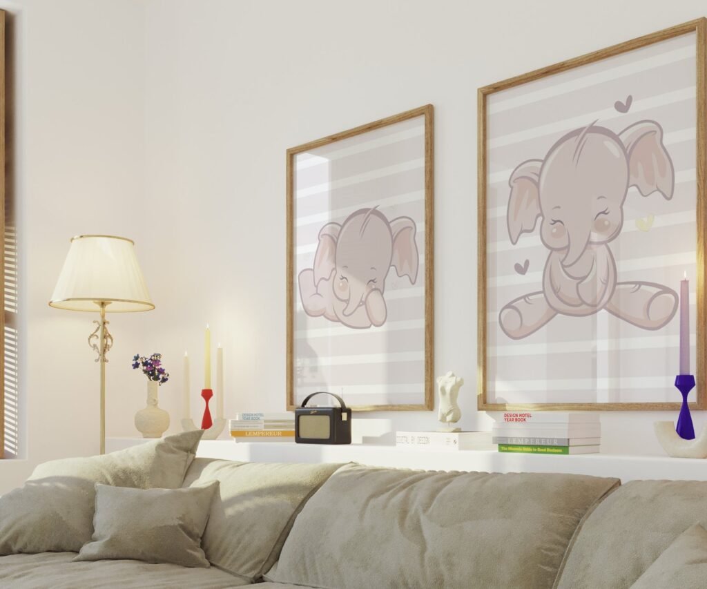 Baby Elephant family Art, Posters Gender Neutral set of 2
