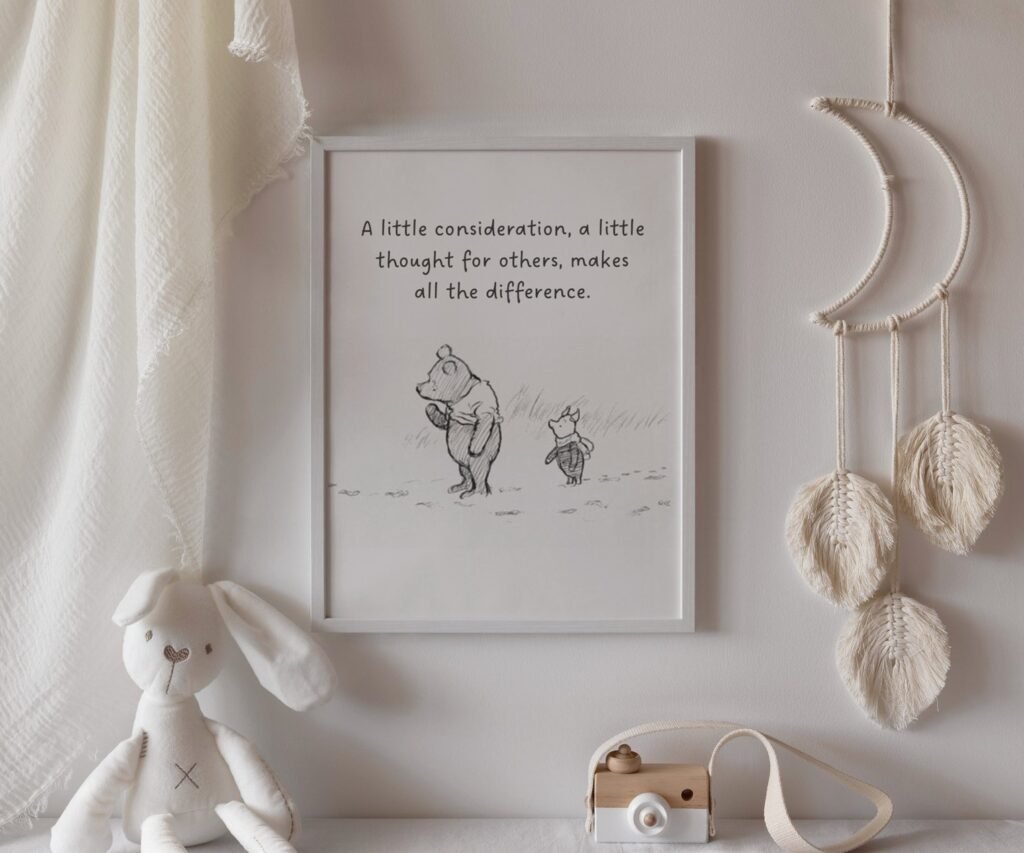 Our Black and White Pooh, Winnie the Pooh Quote Prints, Winnie the Pooh Print, set of 1, soothing colors, and heartwarming quotes that are bound to bring joy and comfort to your baby’s room. Each print is thoughtfully crafted to add a touch of magic and wonder, making it an ideal gift for new parents or a special treat for your own bundle of joy.