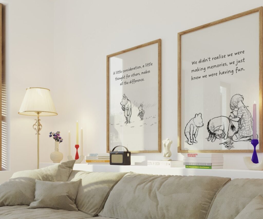 Our Black and White Pooh, Winnie the Pooh Quote Prints, Winnie the Pooh Print, set of 2, soothing colors, and heartwarming quotes that are bound to bring joy and comfort to your baby’s room. Each print is thoughtfully crafted to add a touch of magic and wonder, making it an ideal gift for new parents or a special treat for your own bundle of joy.