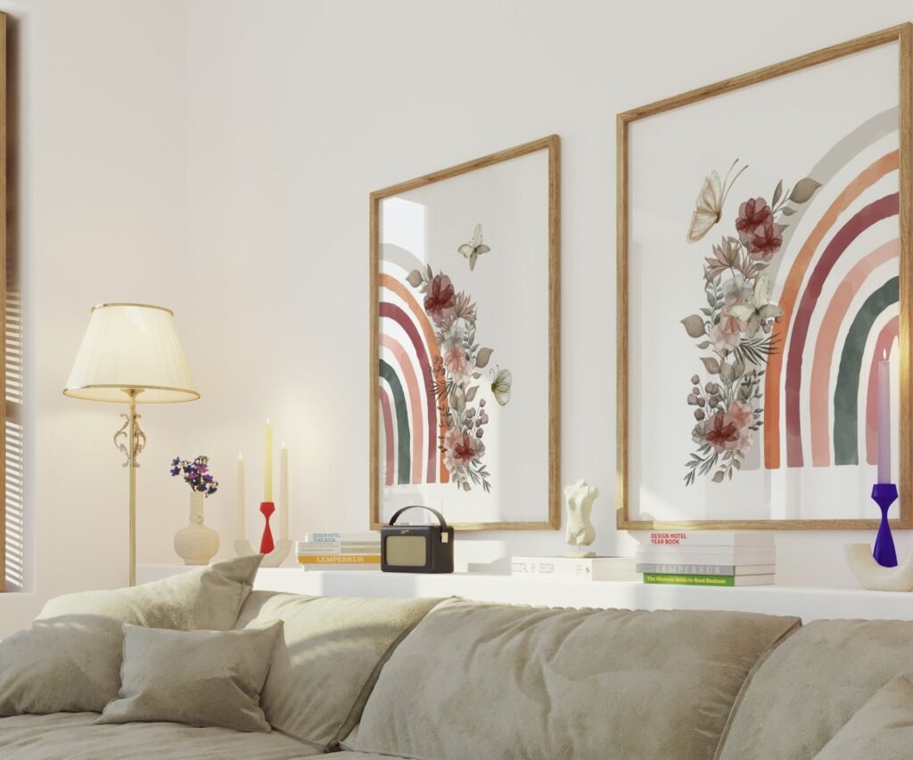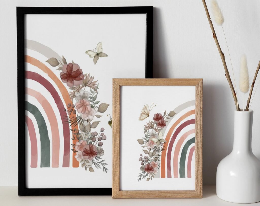 Our Boho Rainbow set of 2 Nursery Art Prints, Girl WILDFLOWERS, soothing colors, and heartwarming quotes that are bound to bring joy and comfort to your baby’s room. Each print is thoughtfully crafted to add a touch of magic and wonder, making it an ideal gift for new parents or a special treat for your own bundle of joy.