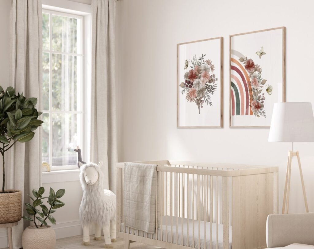 Our Boho Rainbow set of 2 Nursery Art Prints, Girl WILDFLOWERS, soothing colors, and heartwarming quotes that are bound to bring joy and comfort to your baby’s room. Each print is thoughtfully crafted to add a touch of magic and wonder, making it an ideal gift for new parents or a special treat for your own bundle of joy.