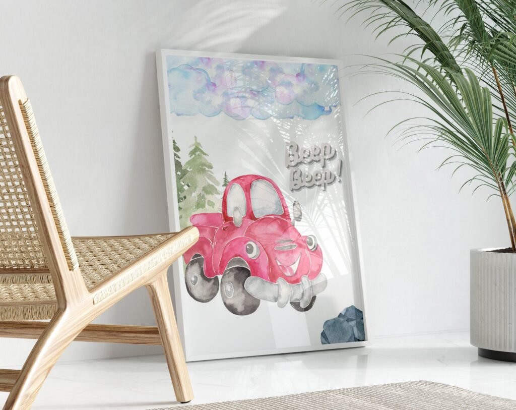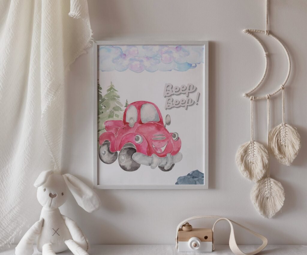 Our Car Nursery,Train, Rocket, Plane, transportation set of 1, soothing colors, and heartwarming quotes that are bound to bring joy and comfort to your baby’s room. Each print is thoughtfully crafted to add a touch of magic and wonder, making it an ideal gift for new parents or a special treat for your own bundle of joy.