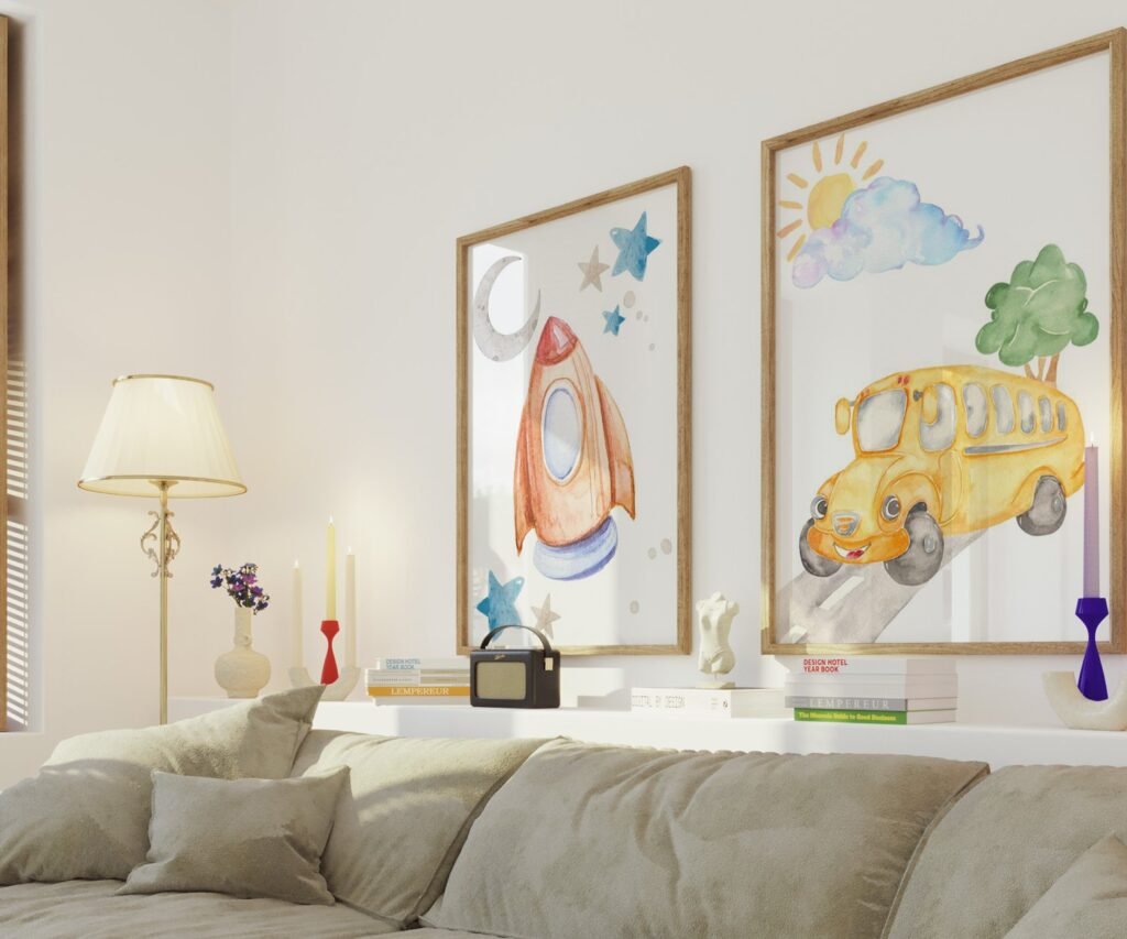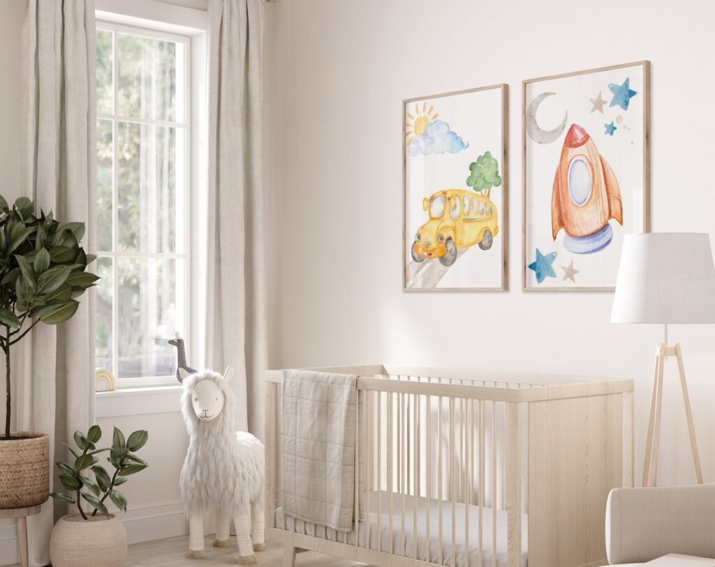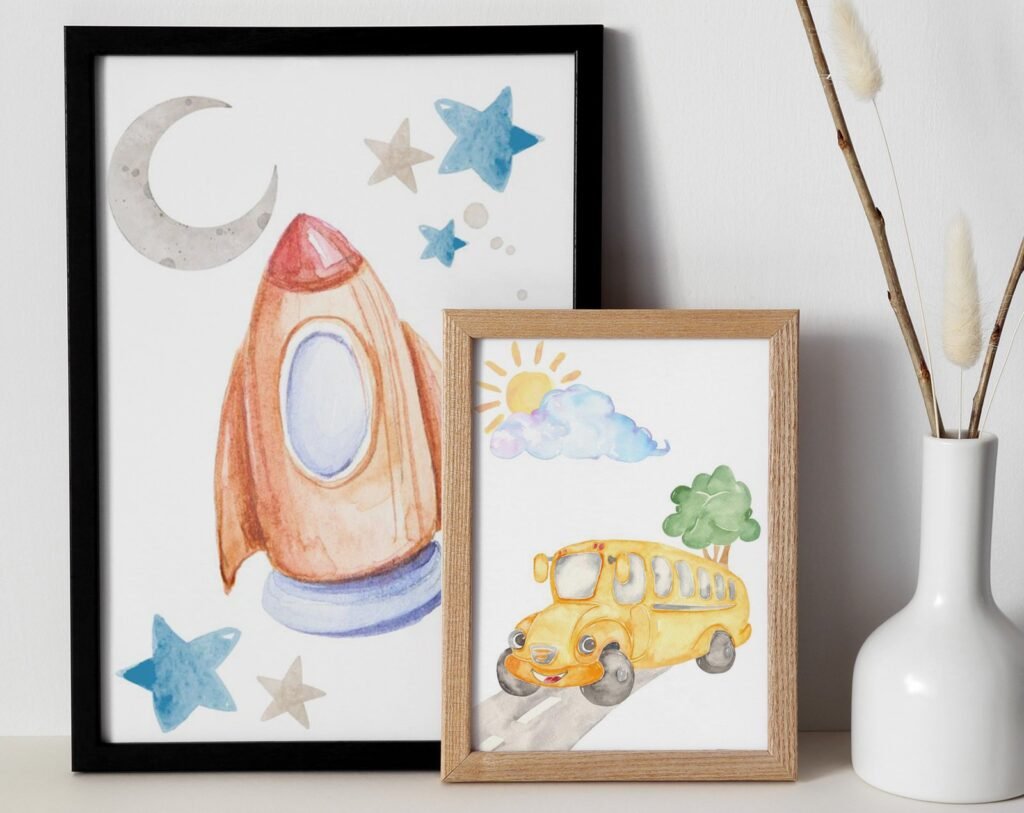 Our Car Nursery,Train, Rocket, Plane, transportation set of 2, soothing colors, and heartwarming quotes that are bound to bring joy and comfort to your baby’s room. Each print is thoughtfully crafted to add a touch of magic and wonder, making it an ideal gift for new parents or a special treat for your own bundle of joy.