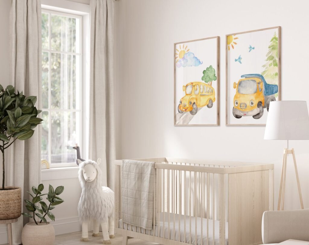 Our Car Nursery,Train, Rocket, Plane, transportation set of 2, soothing colors, and heartwarming quotes that are bound to bring joy and comfort to your baby’s room. Each print is thoughtfully crafted to add a touch of magic and wonder, making it an ideal gift for new parents or a special treat for your own bundle of joy.