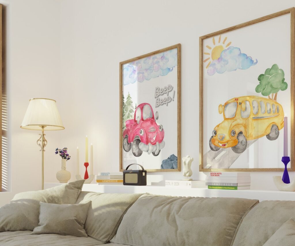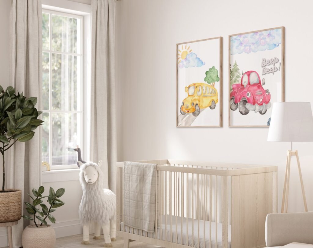 Our Car Nursery,Train, Rocket, Plane, transportation set of 2, soothing colors, and heartwarming quotes that are bound to bring joy and comfort to your baby’s room. Each print is thoughtfully crafted to add a touch of magic and wonder, making it an ideal gift for new parents or a special treat for your own bundle of joy.