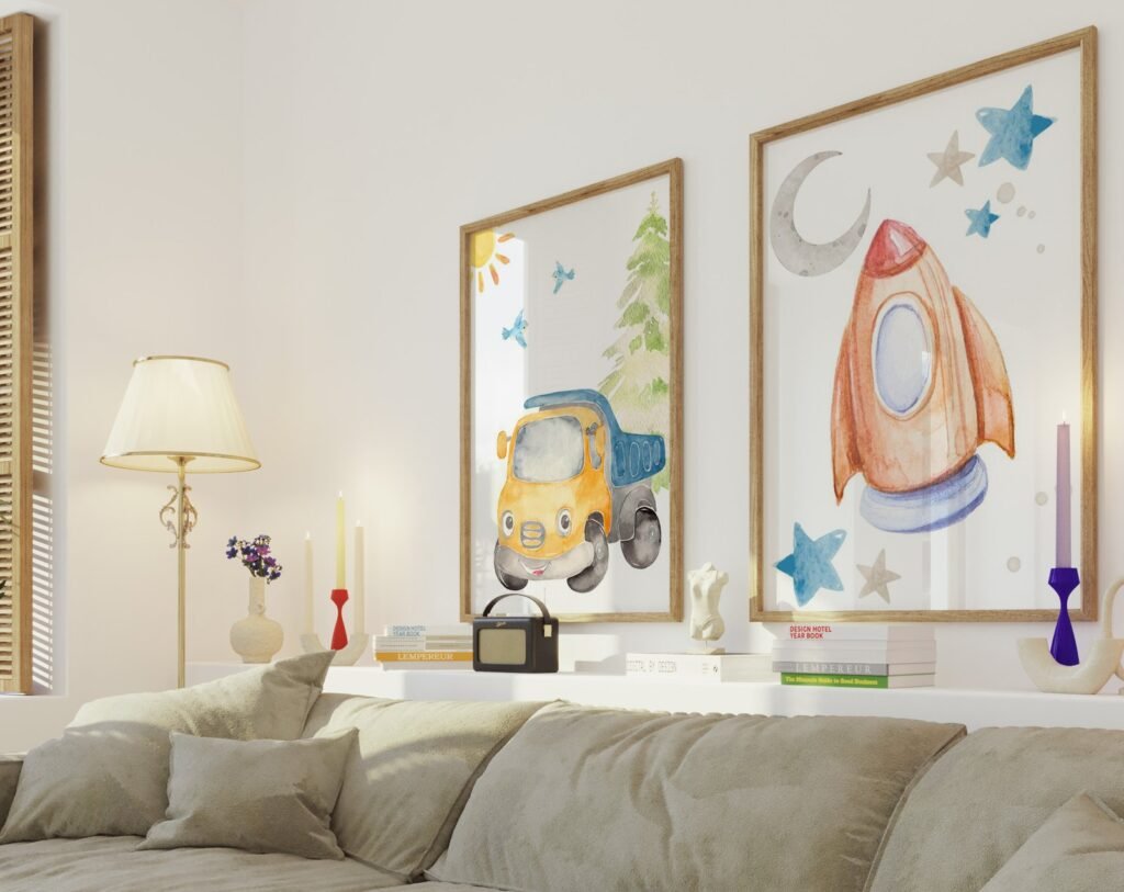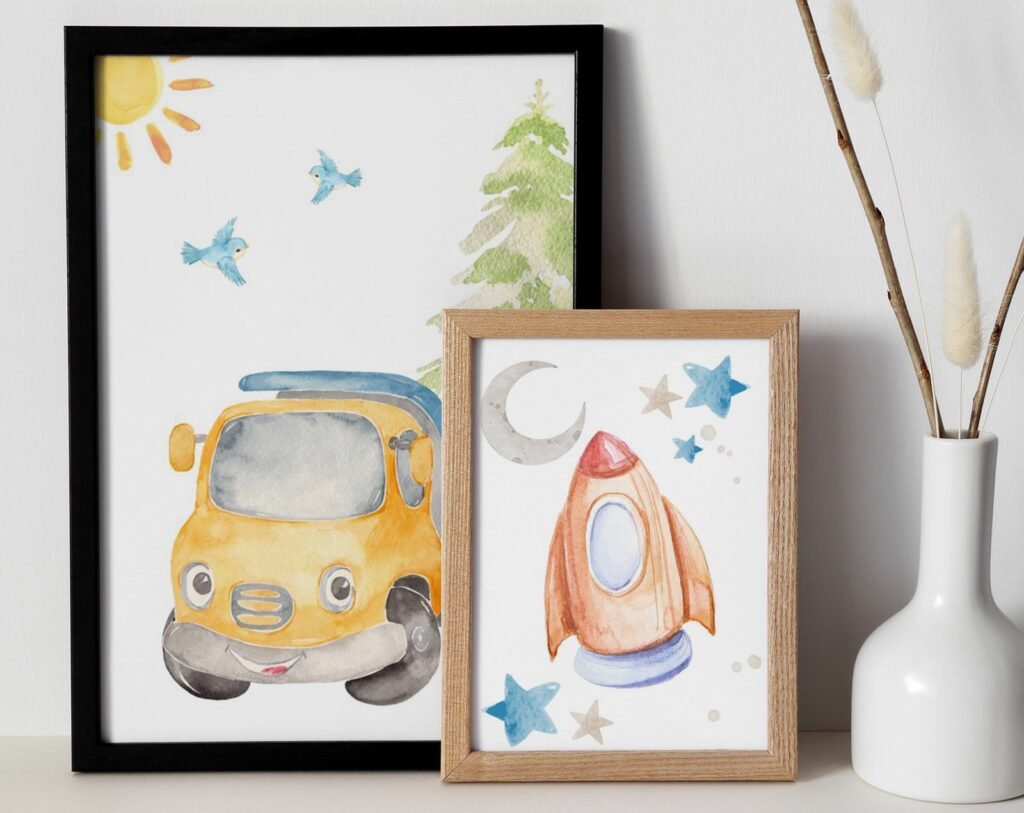 Our Car Nursery,Train, Rocket, Plane, transportation set of 2, soothing colors, and heartwarming quotes that are bound to bring joy and comfort to your baby’s room. Each print is thoughtfully crafted to add a touch of magic and wonder, making it an ideal gift for new parents or a special treat for your own bundle of joy.
