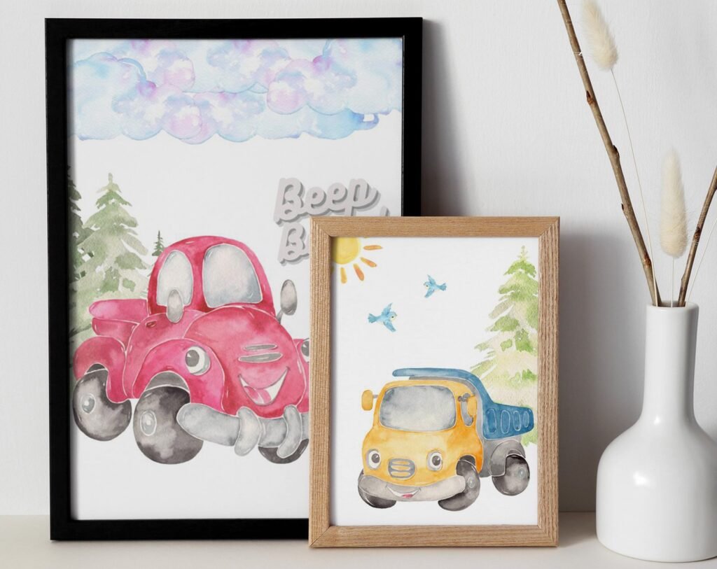 Our Car Nursery,Train, Rocket, Plane, transportation set of 2, soothing colors, and heartwarming quotes that are bound to bring joy and comfort to your baby’s room. Each print is thoughtfully crafted to add a touch of magic and wonder, making it an ideal gift for new parents or a special treat for your own bundle of joy.