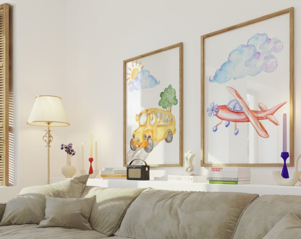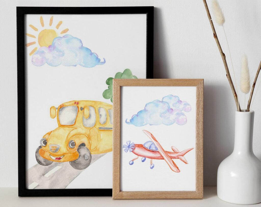 Our Car Nursery,Train, Rocket, Plane, transportation set of 2, soothing colors, and heartwarming quotes that are bound to bring joy and comfort to your baby’s room. Each print is thoughtfully crafted to add a touch of magic and wonder, making it an ideal gift for new parents or a special treat for your own bundle of joy.