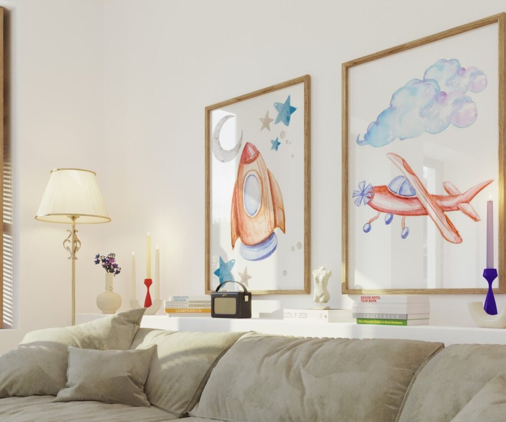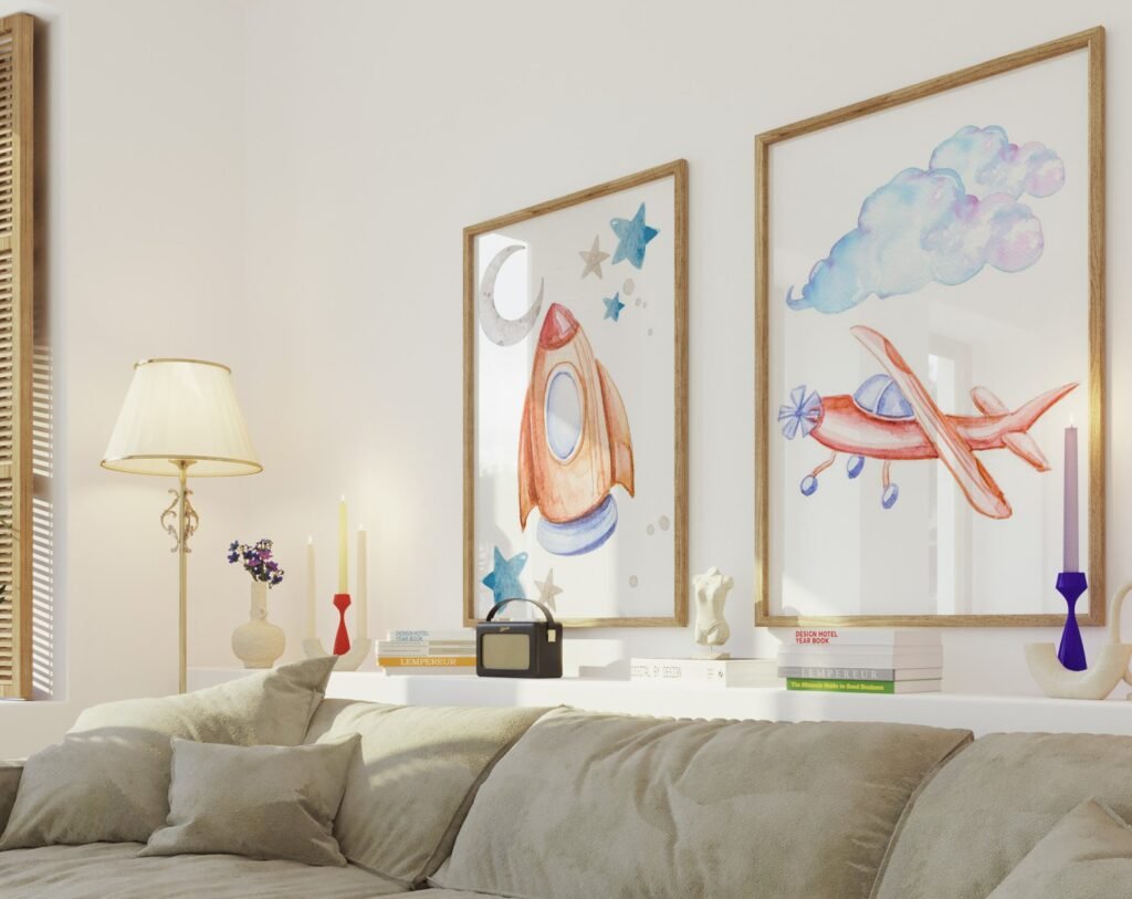 Our Car Nursery,Train, Rocket, Plane, transportation set of 2, soothing colors, and heartwarming quotes that are bound to bring joy and comfort to your baby’s room. Each print is thoughtfully crafted to add a touch of magic and wonder, making it an ideal gift for new parents or a special treat for your own bundle of joy.