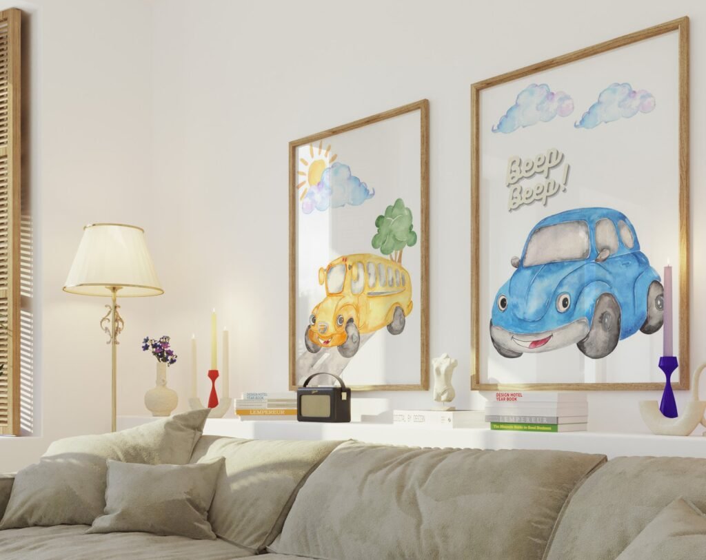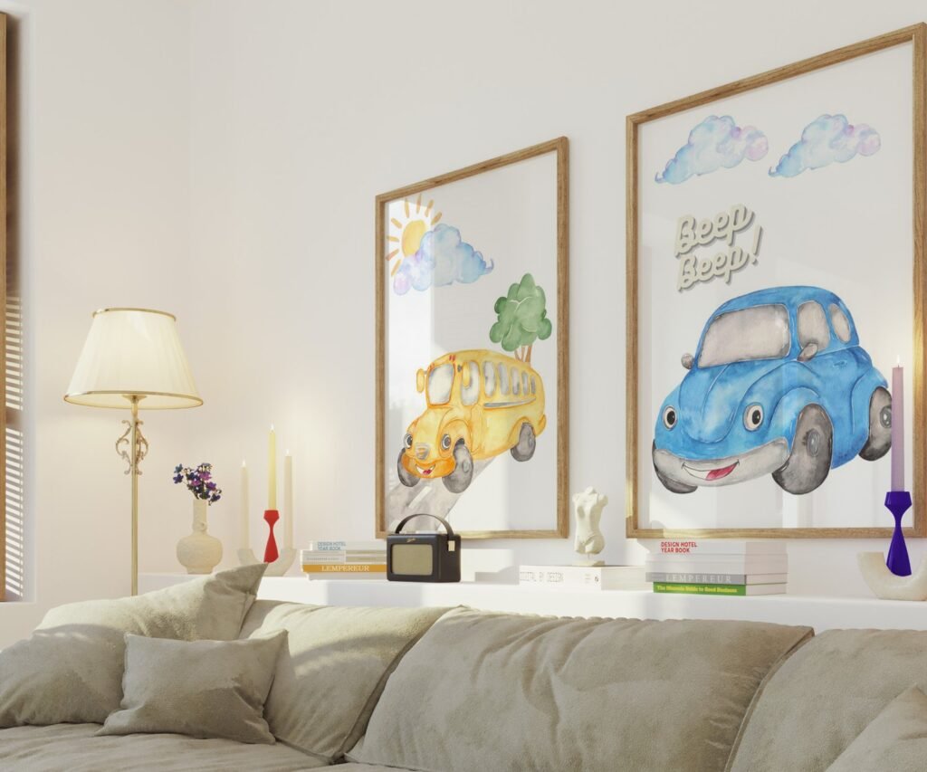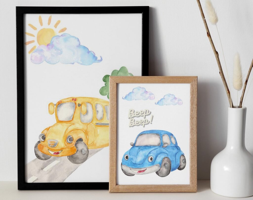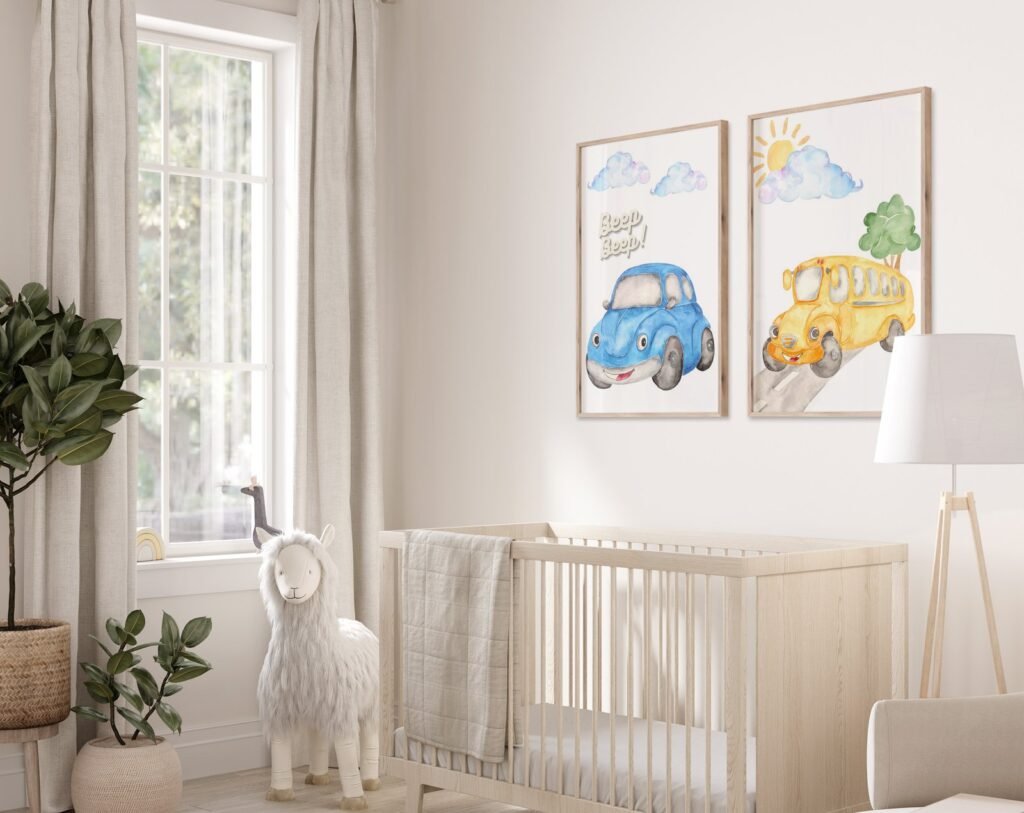 Our Car Nursery,Train, Rocket, Plane, transportation set of 2, soothing colors, and heartwarming quotes that are bound to bring joy and comfort to your baby’s room. Each print is thoughtfully crafted to add a touch of magic and wonder, making it an ideal gift for new parents or a special treat for your own bundle of joy.