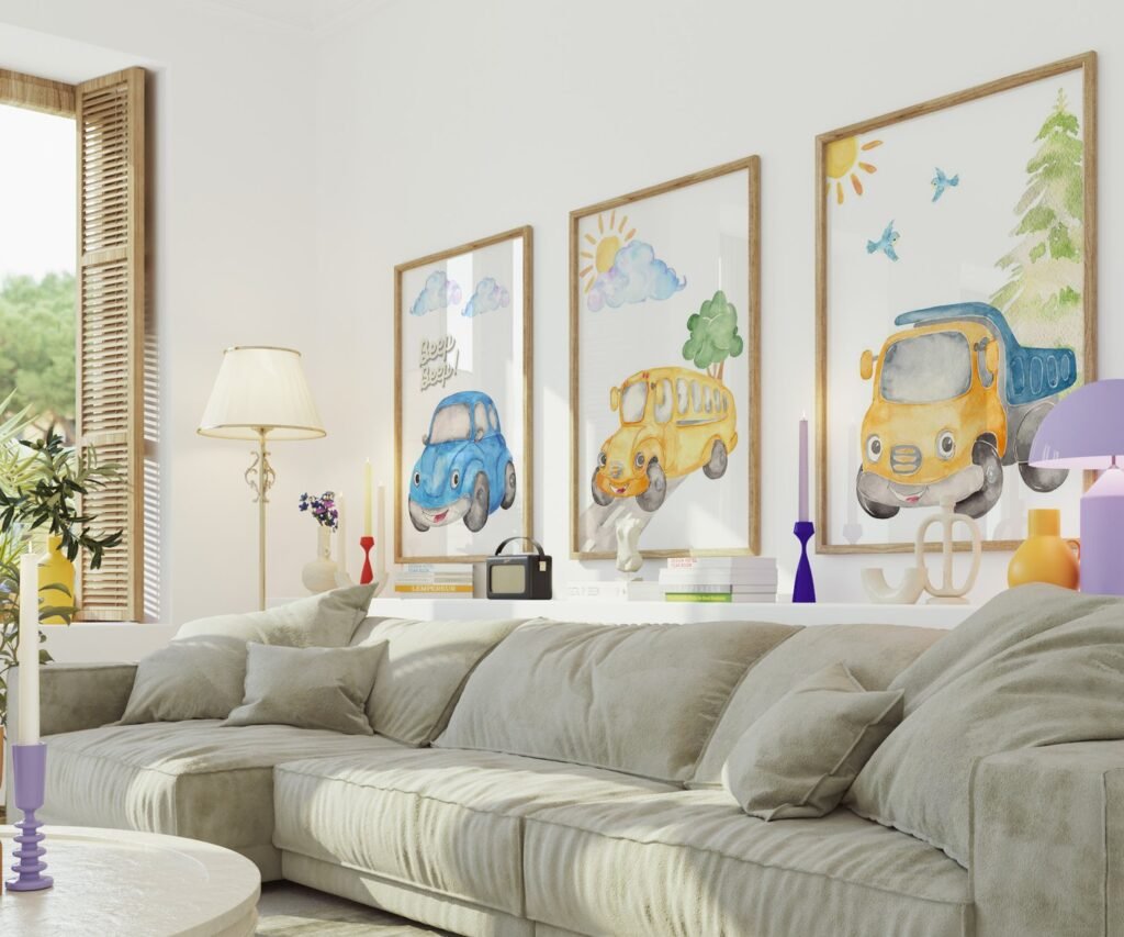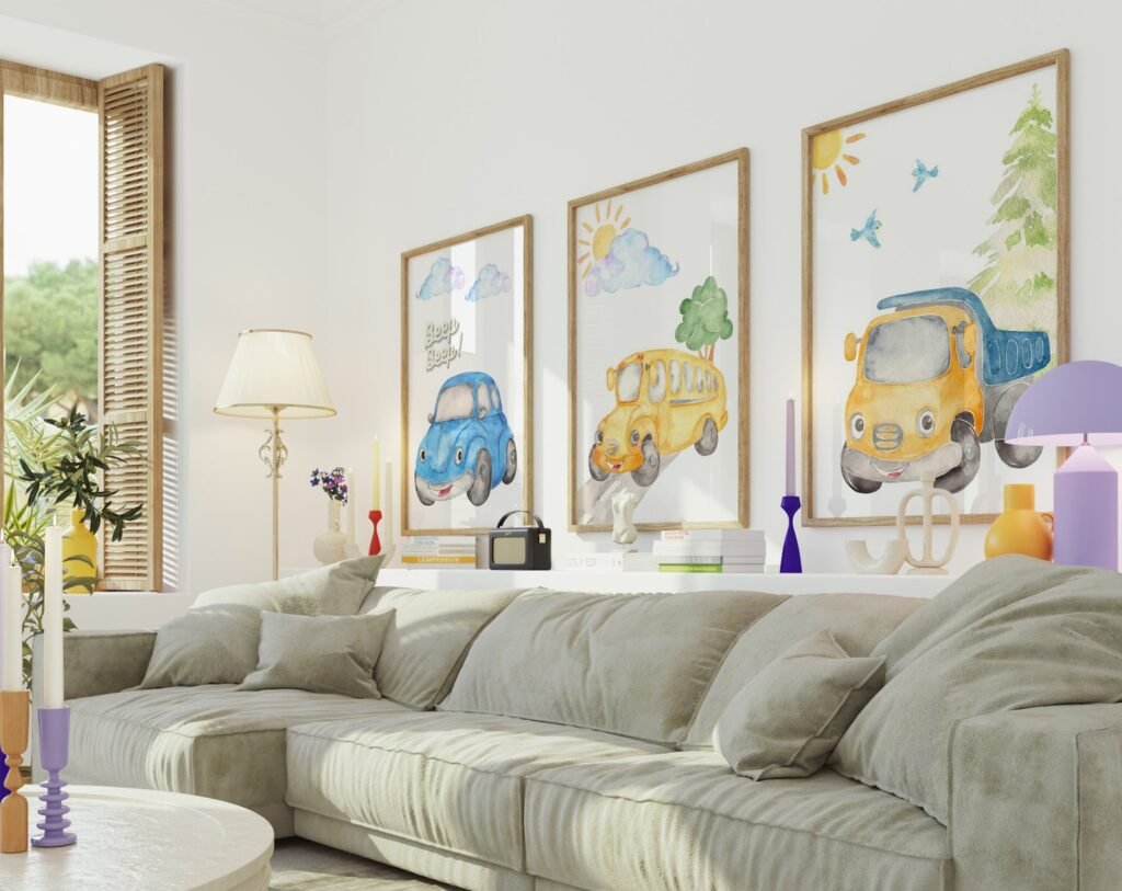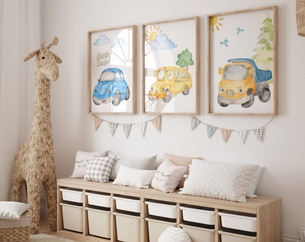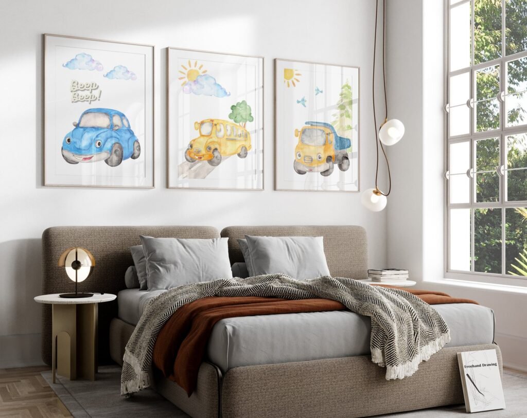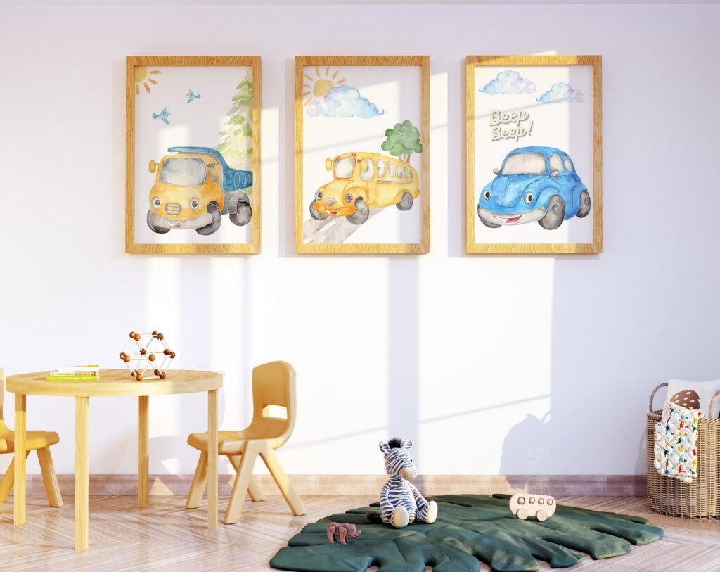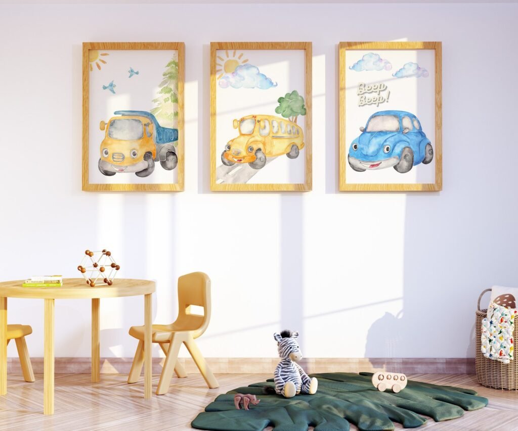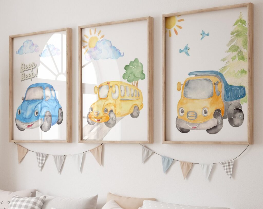 Our Car Nursery,Train, Rocket, Plane, transportation set of 3, soothing colors, and heartwarming quotes that are bound to bring joy and comfort to your baby’s room. Each print is thoughtfully crafted to add a touch of magic and wonder, making it an ideal gift for new parents or a special treat for your own bundle of joy.