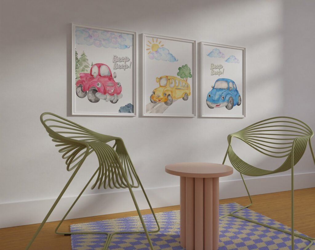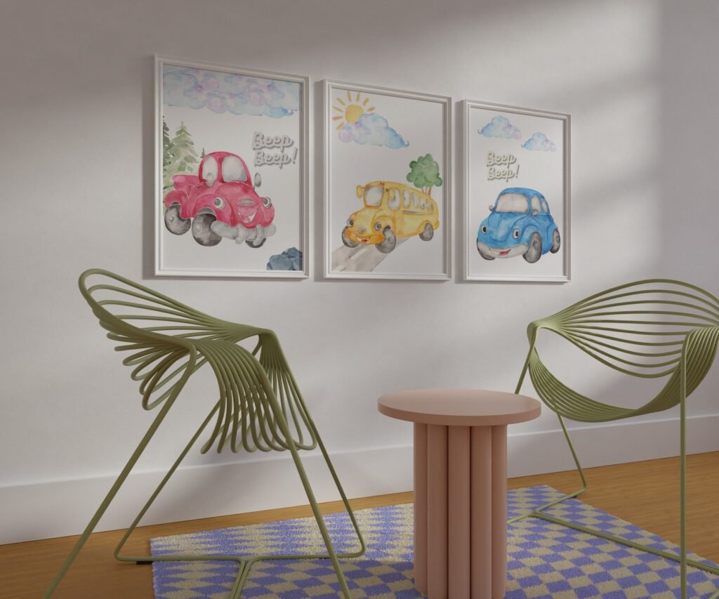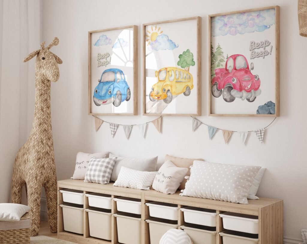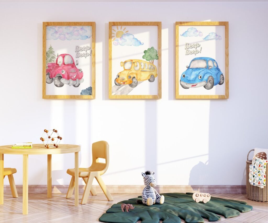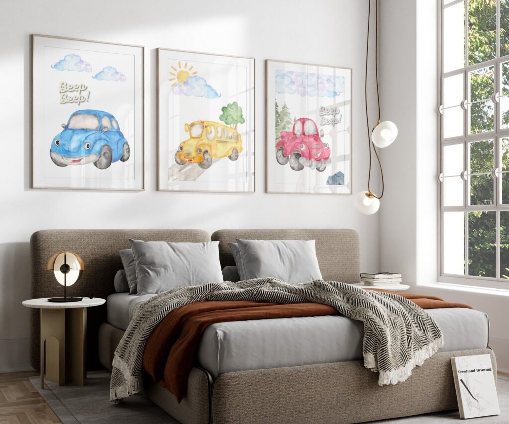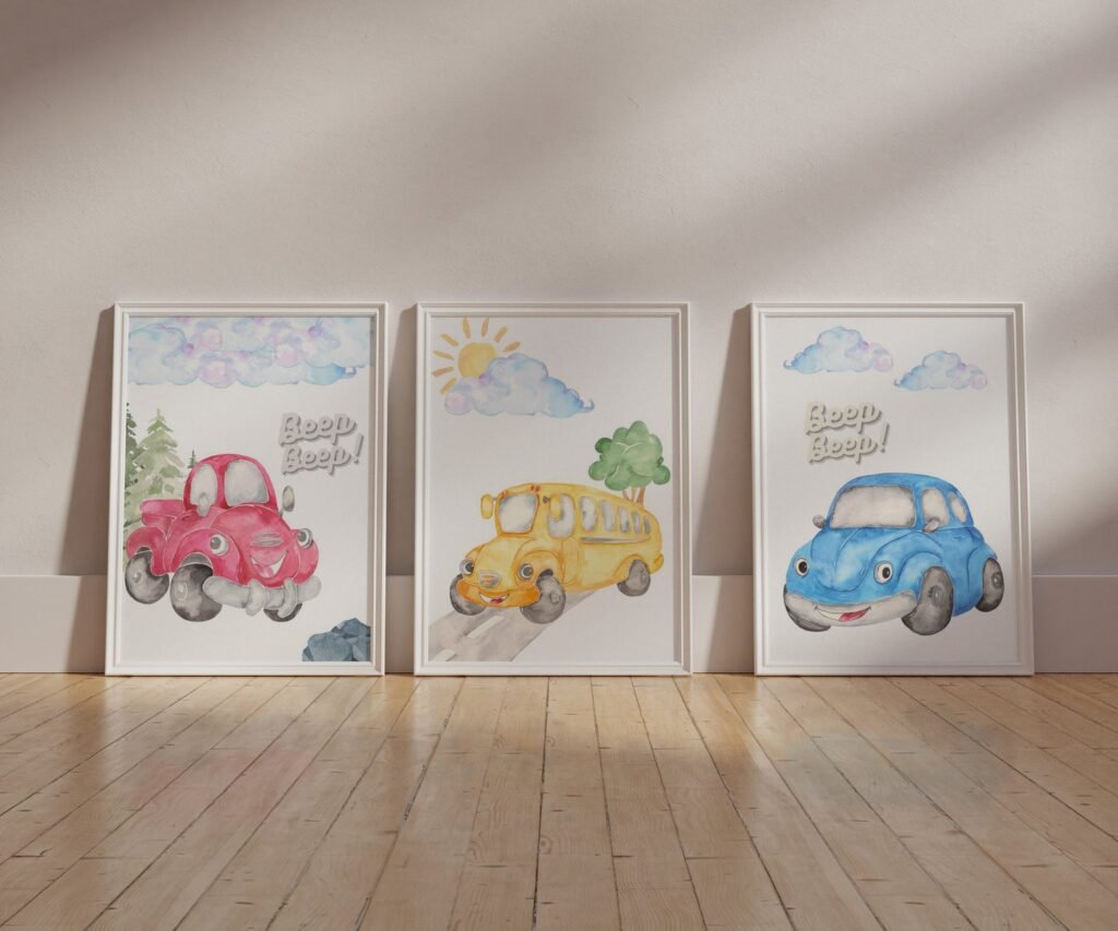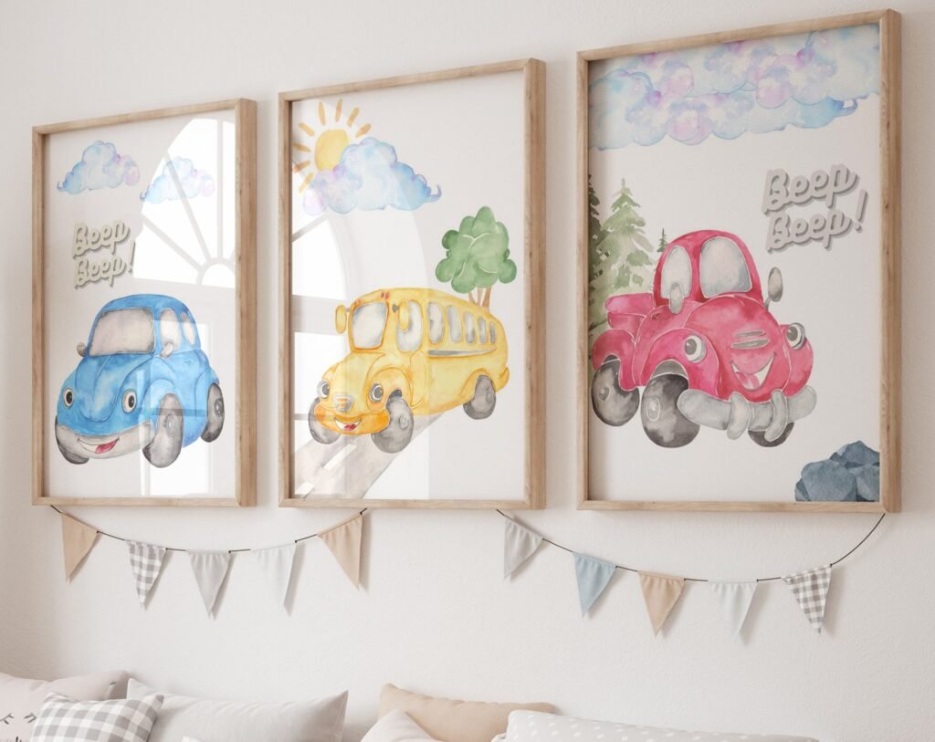 Our Car Nursery,Train, Rocket, Plane, transportation set of 3, soothing colors, and heartwarming quotes that are bound to bring joy and comfort to your baby’s room. Each print is thoughtfully crafted to add a touch of magic and wonder, making it an ideal gift for new parents or a special treat for your own bundle of joy.
