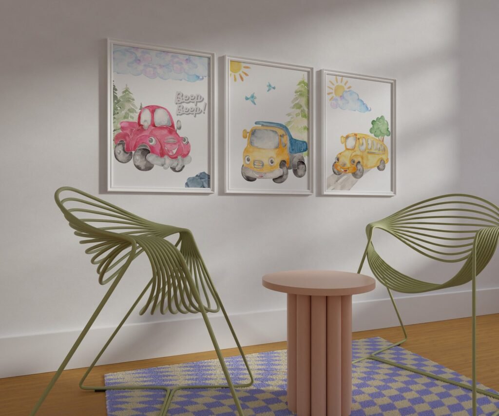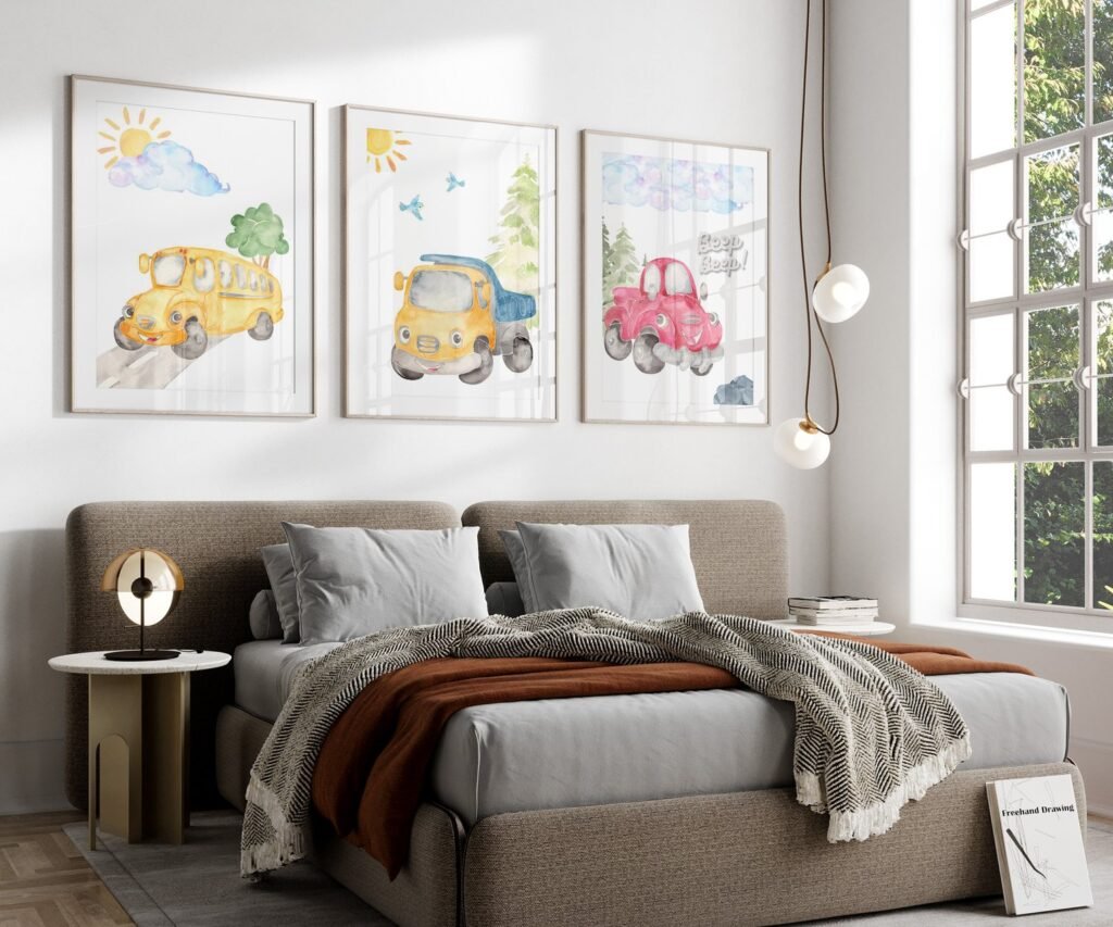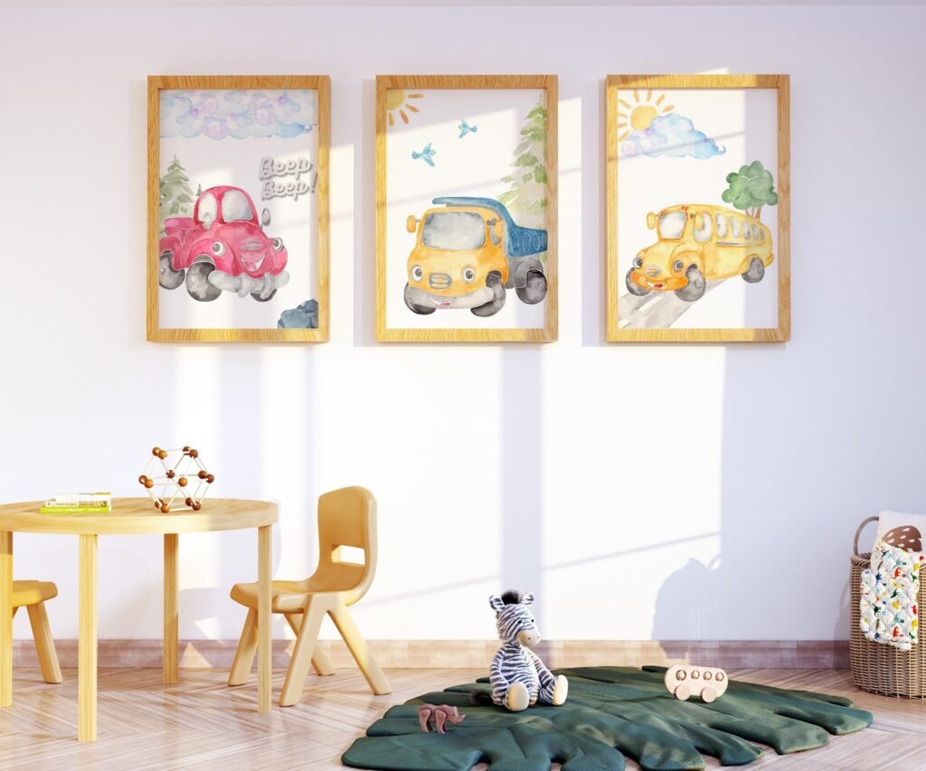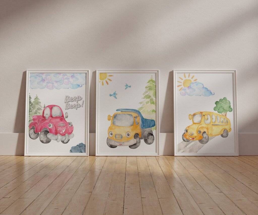 Our Car Nursery,Train, Rocket, Plane, transportation set of 3, soothing colors, and heartwarming quotes that are bound to bring joy and comfort to your baby’s room. Each print is thoughtfully crafted to add a touch of magic and wonder, making it an ideal gift for new parents or a special treat for your own bundle of joy.