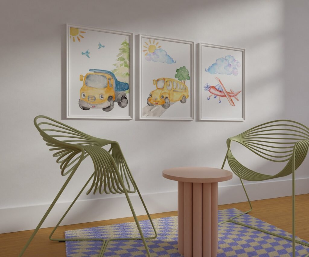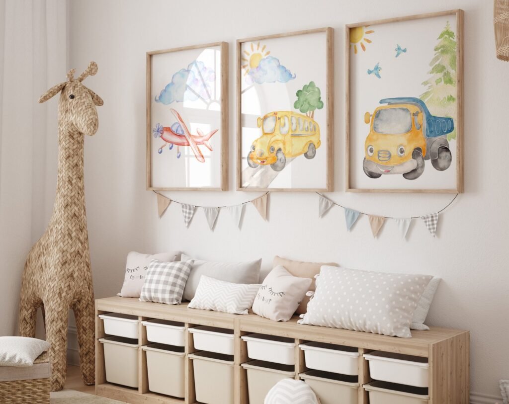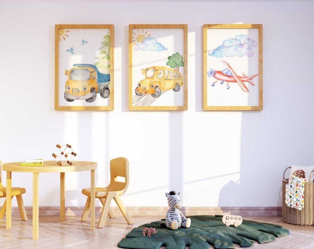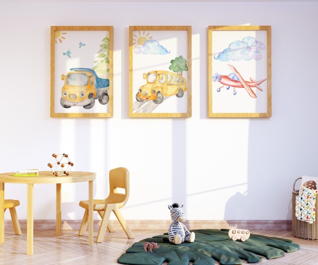 Our Car Nursery,Train, Rocket, Plane, transportation set of 3, soothing colors, and heartwarming quotes that are bound to bring joy and comfort to your baby’s room. Each print is thoughtfully crafted to add a touch of magic and wonder, making it an ideal gift for new parents or a special treat for your own bundle of joy.