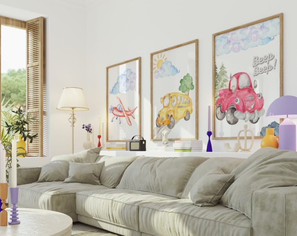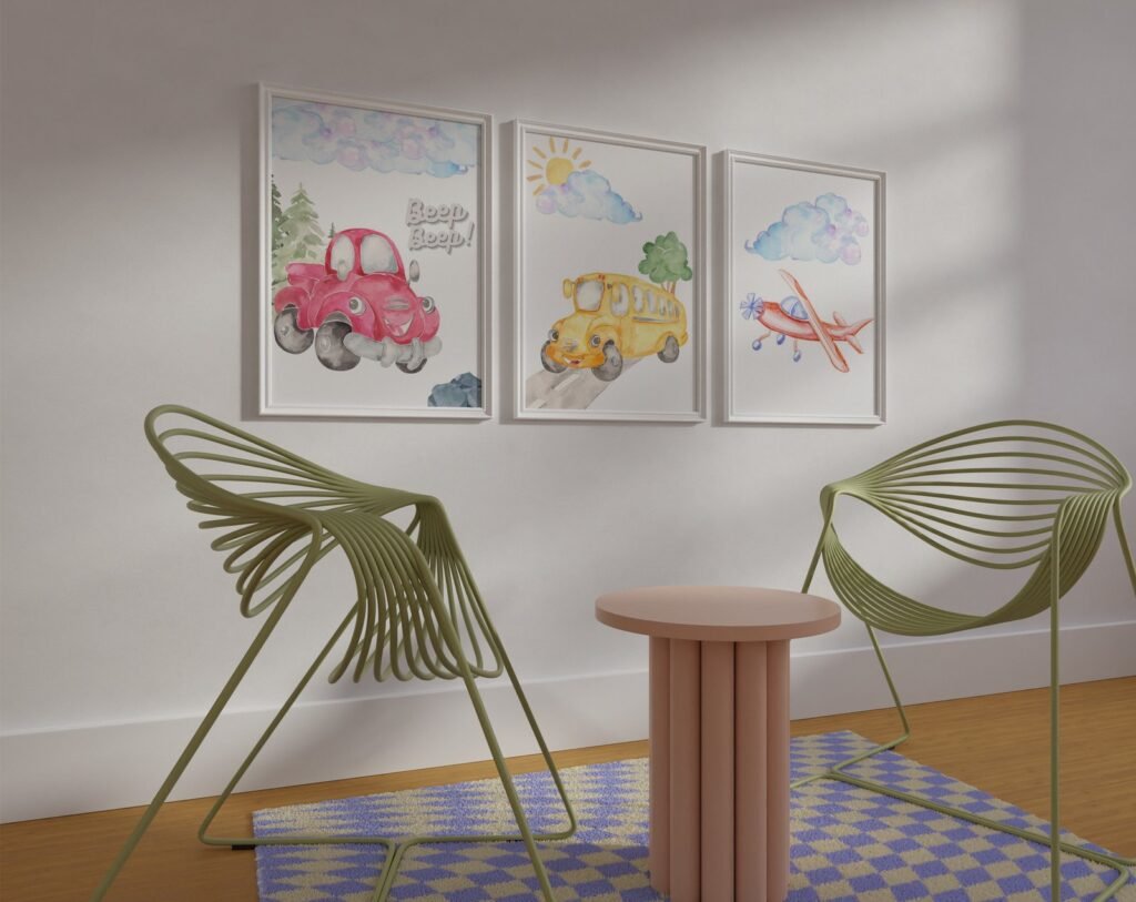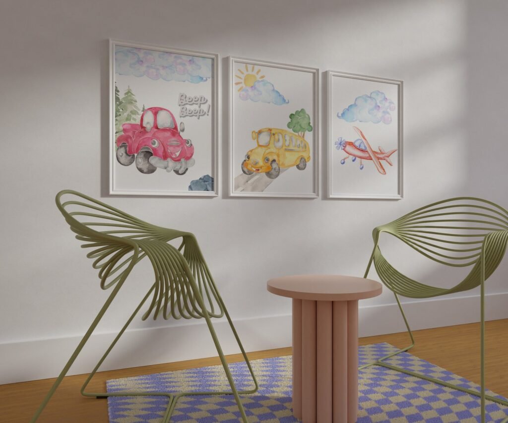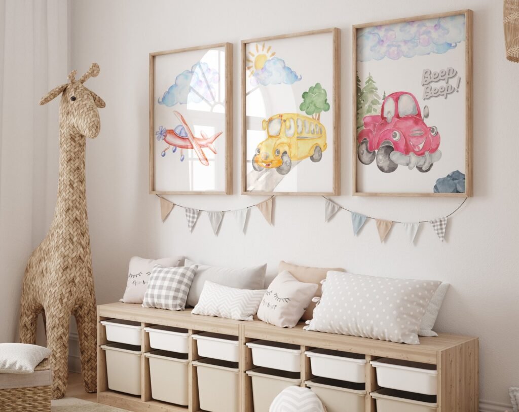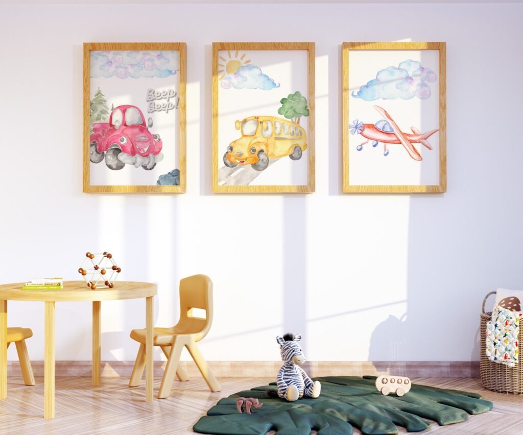 Our Car Nursery,Train, Rocket, Plane, transportation set of 3, soothing colors, and heartwarming quotes that are bound to bring joy and comfort to your baby’s room. Each print is thoughtfully crafted to add a touch of magic and wonder, making it an ideal gift for new parents or a special treat for your own bundle of joy.