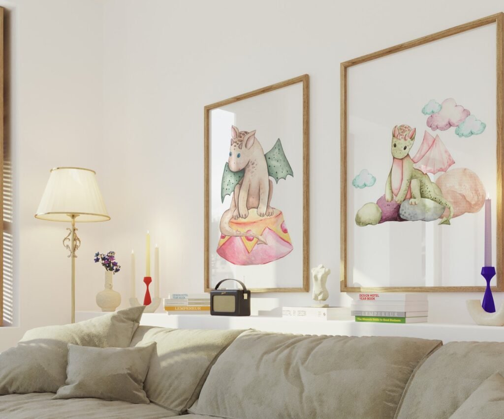 Our Dragon Posters, baby dragons set of 2, soothing colors, and heartwarming quotes that are bound to bring joy and comfort to your baby’s room. Each print is thoughtfully crafted to add a touch of magic and wonder, making it an ideal gift for new parents or a special treat for your own bundle of joy.