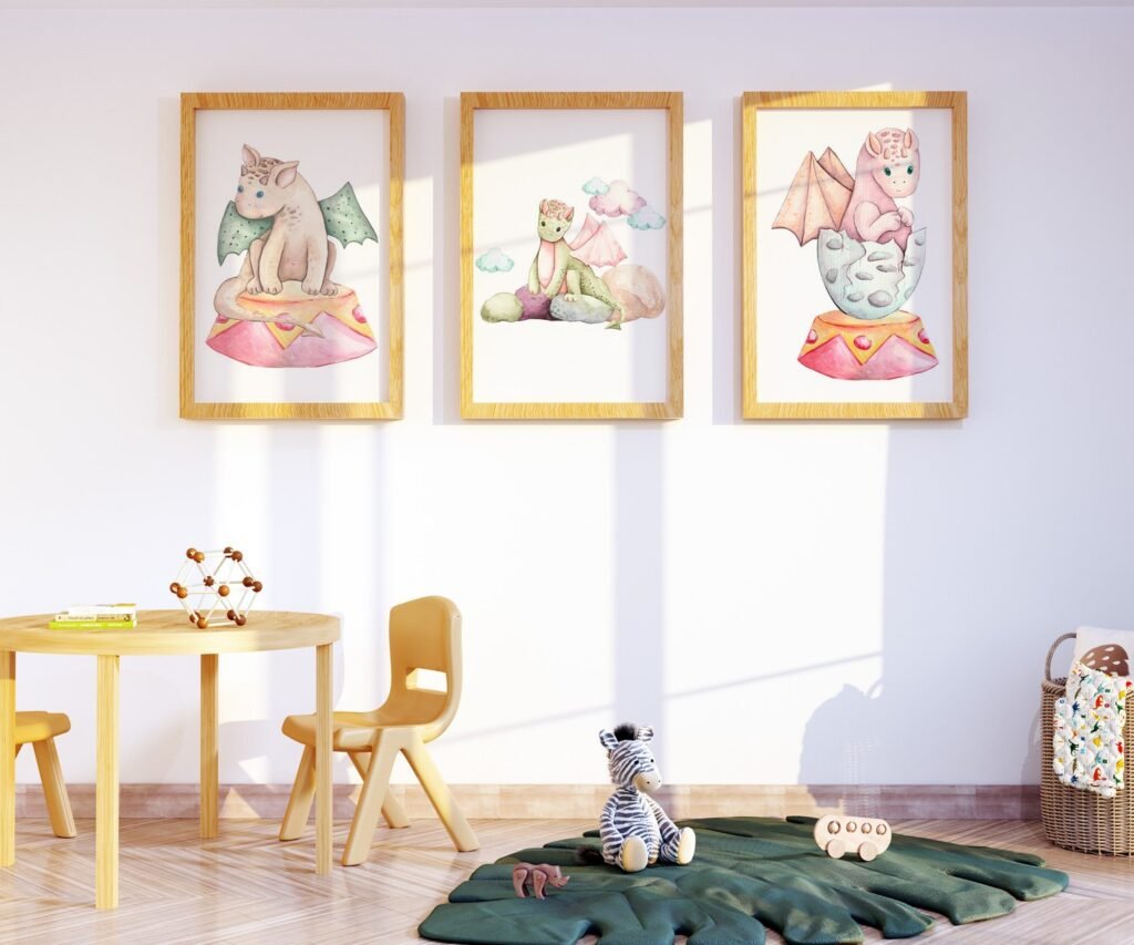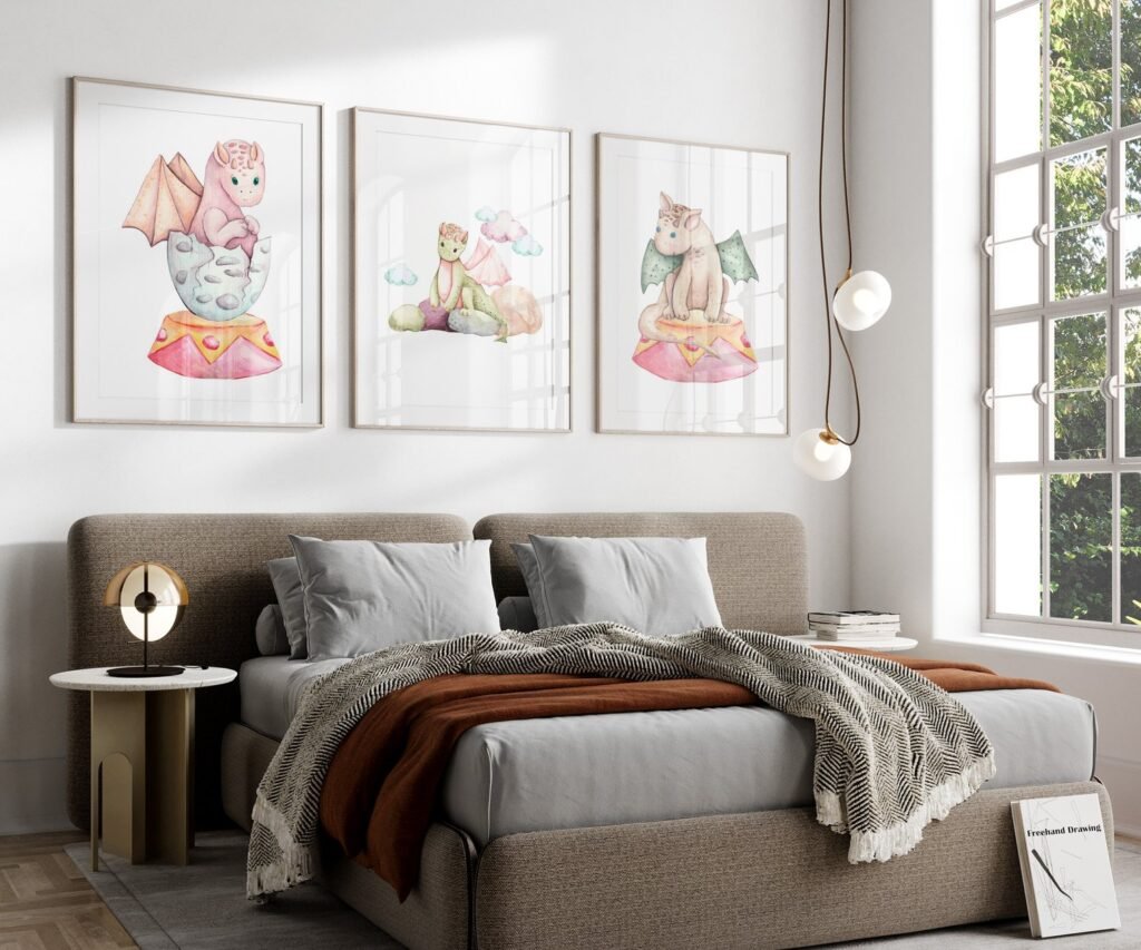 Our Dragon Posters, baby dragons set of 3, soothing colors, and heartwarming quotes that are bound to bring joy and comfort to your baby’s room. Each print is thoughtfully crafted to add a touch of magic and wonder, making it an ideal gift for new parents or a special treat for your own bundle of joy.