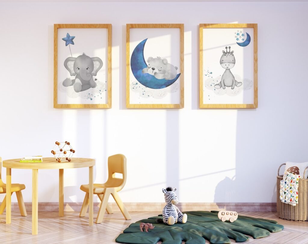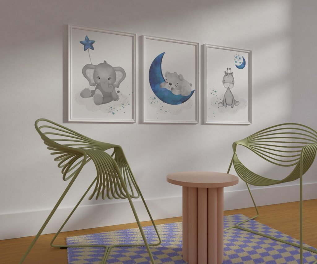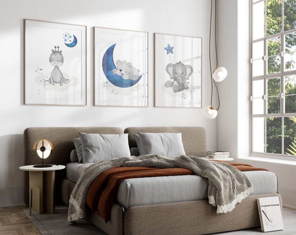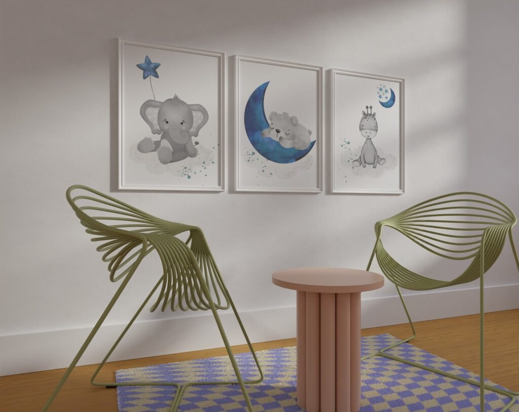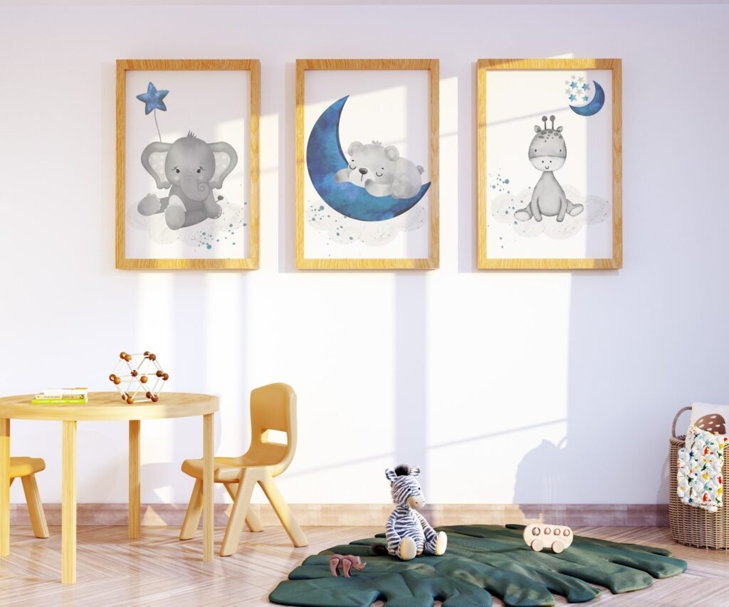 Our elephant and giraffe, safari animals, navy blue nursery, woodland animal set of 3, soothing colors, and heartwarming quotes that are bound to bring joy and comfort to your baby’s room. Each print is thoughtfully crafted to add a touch of magic and wonder, making it an ideal gift for new parents or a special treat for your own bundle of joy.