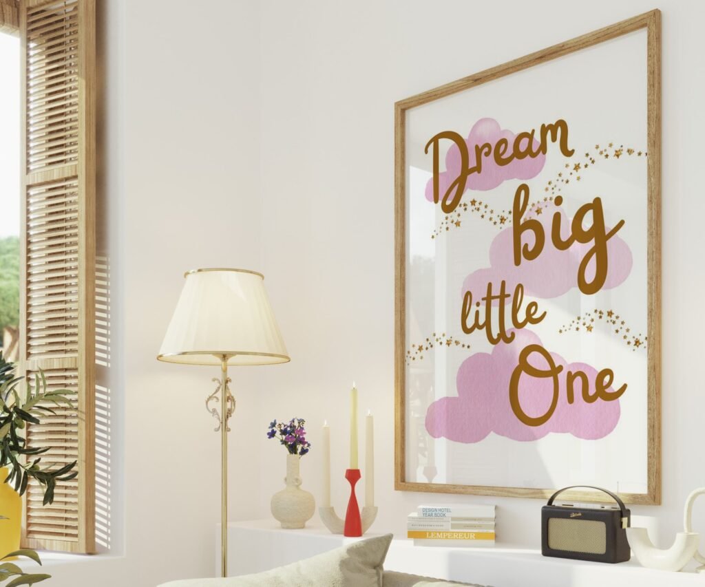 Our Girl pink and gold, dream big little one, cloud and stars, moon and star set of 1, soothing colors, and heartwarming quotes that are bound to bring joy and comfort to your baby’s room. Each print is thoughtfully crafted to add a touch of magic and wonder, making it an ideal gift for new parents or a special treat for your own bundle of joy.