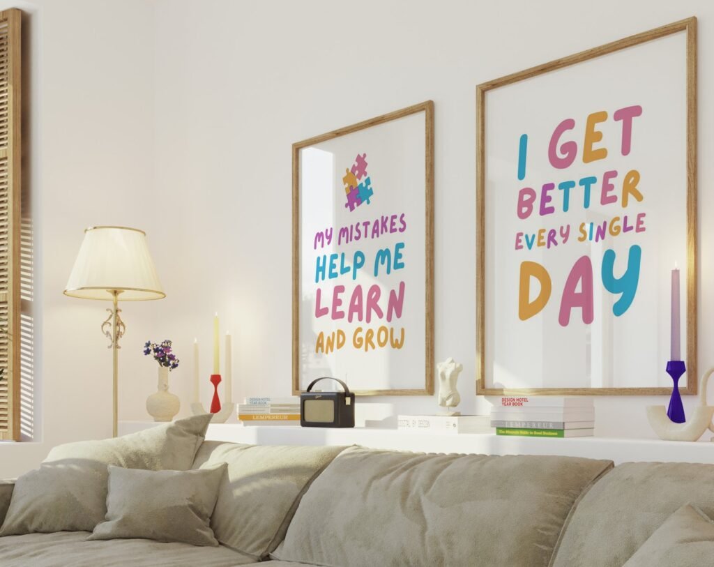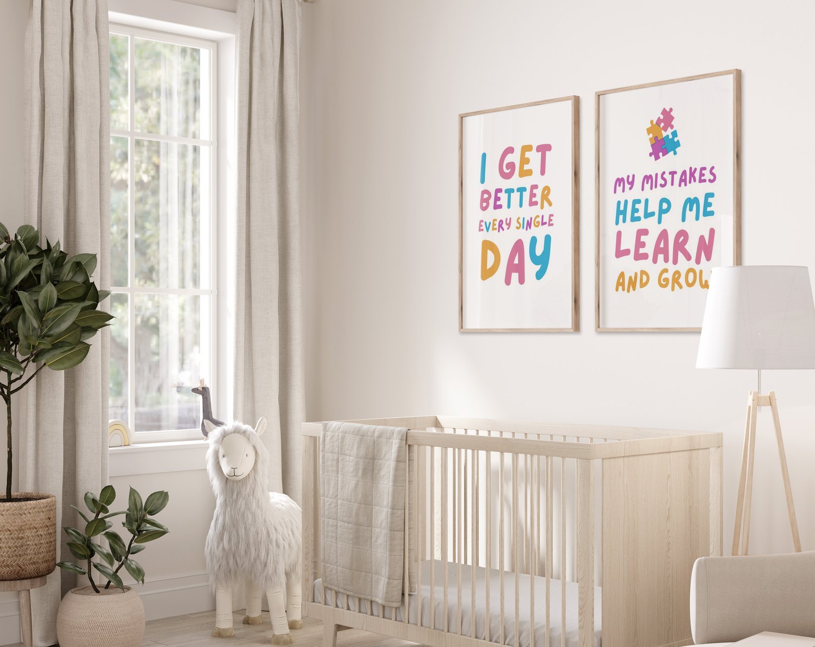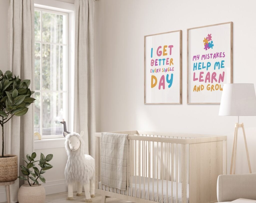 Our kids quote kids Positive Affirmations set of 2, soothing colors, and heartwarming quotes that are bound to bring joy and comfort to your baby’s room. Each print is thoughtfully crafted to add a touch of magic and wonder, making it an ideal gift for new parents or a special treat for your own bundle of joy.