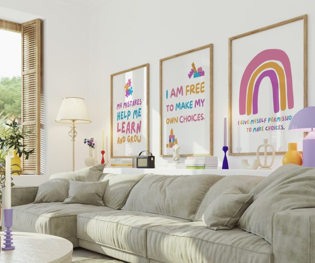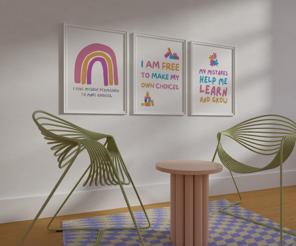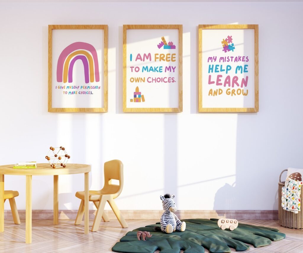 Our kids quote kids Positive Affirmations set of 3, soothing colors, and heartwarming quotes that are bound to bring joy and comfort to your baby’s room. Each print is thoughtfully crafted to add a touch of magic and wonder, making it an ideal gift for new parents or a special treat for your own bundle of joy.