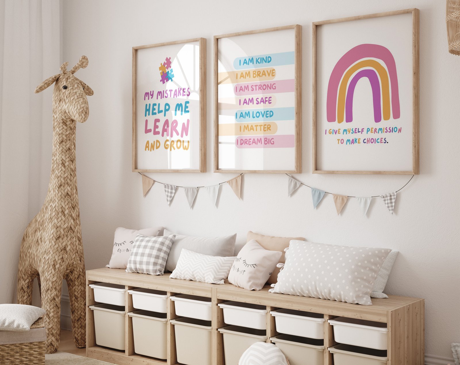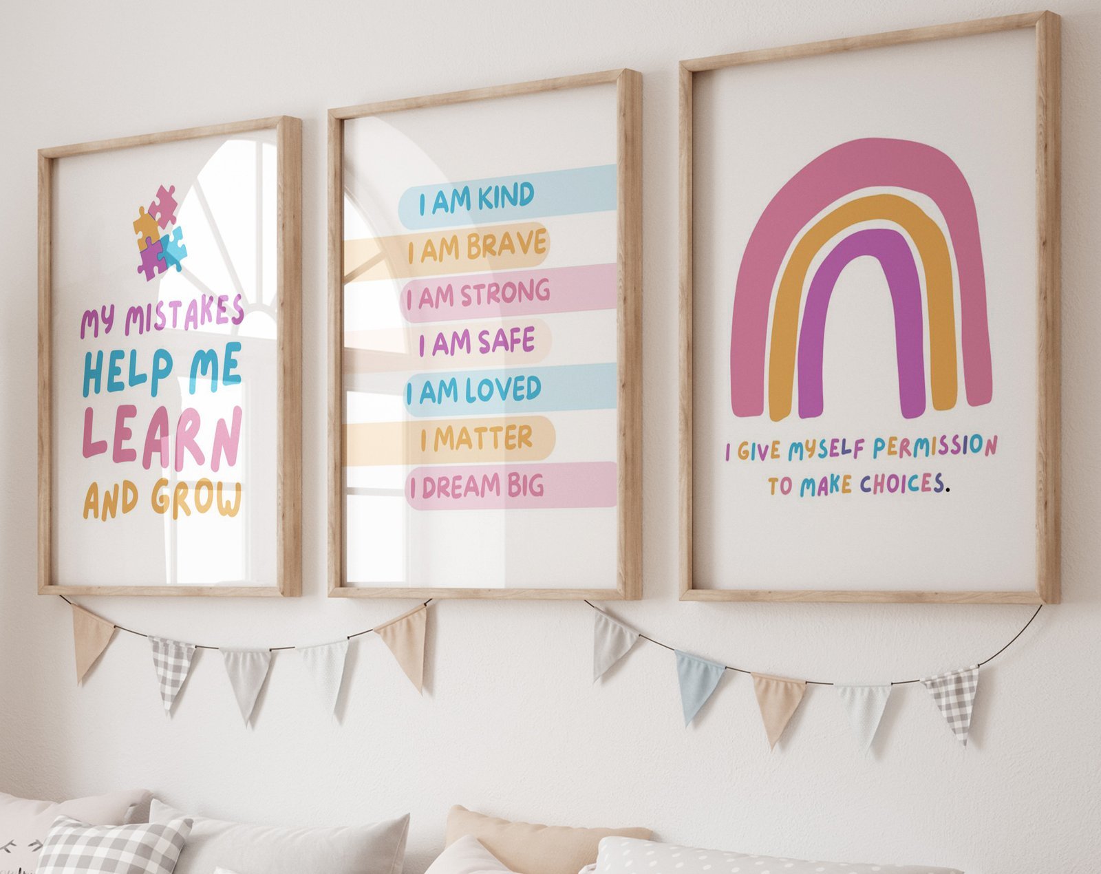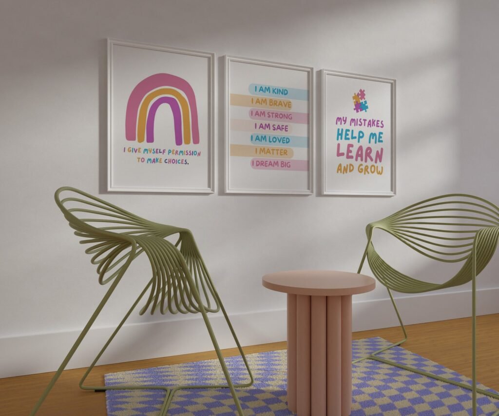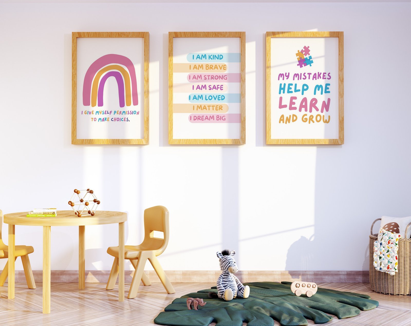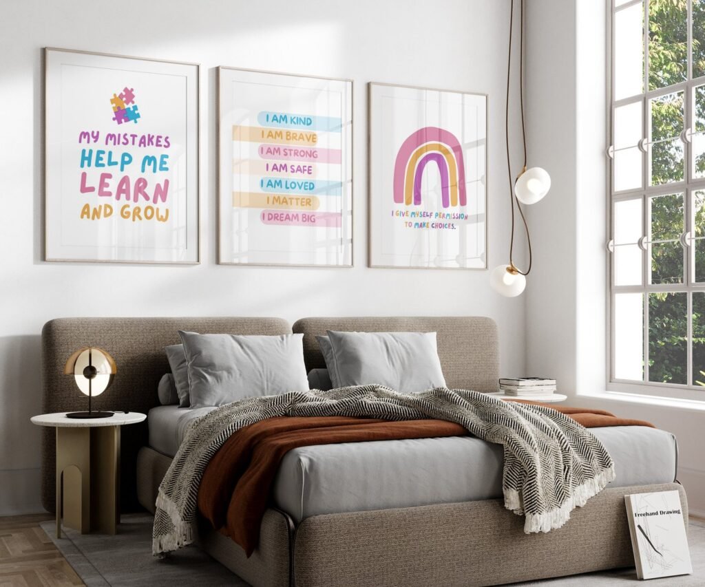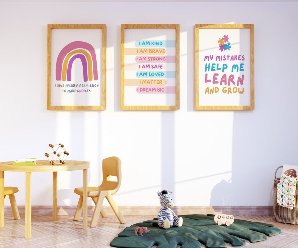 Our kids quote kids Positive Affirmations set of 3, soothing colors, and heartwarming quotes that are bound to bring joy and comfort to your baby’s room. Each print is thoughtfully crafted to add a touch of magic and wonder, making it an ideal gift for new parents or a special treat for your own bundle of joy.