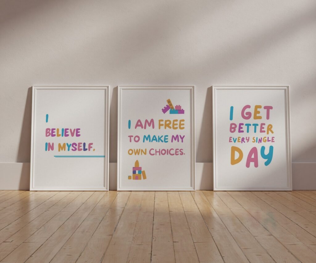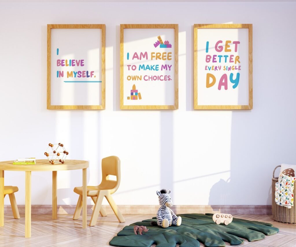Our kids quote kids Positive Affirmations set of 3, soothing colors, and heartwarming quotes that are bound to bring joy and comfort to your baby’s room. Each print is thoughtfully crafted to add a touch of magic and wonder, making it an ideal gift for new parents or a special treat for your own bundle of joy.