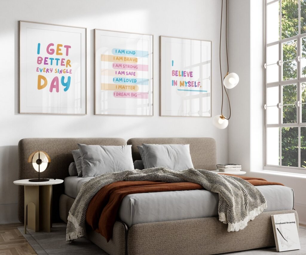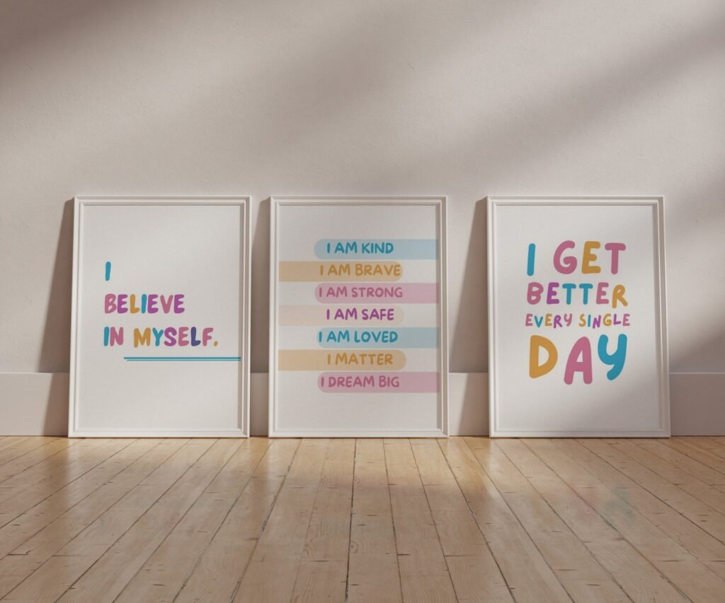 Our kids quote kids Positive Affirmations set of 3, soothing colors, and heartwarming quotes that are bound to bring joy and comfort to your baby’s room. Each print is thoughtfully crafted to add a touch of magic and wonder, making it an ideal gift for new parents or a special treat for your own bundle of joy.