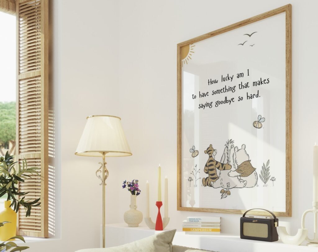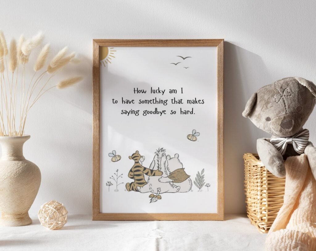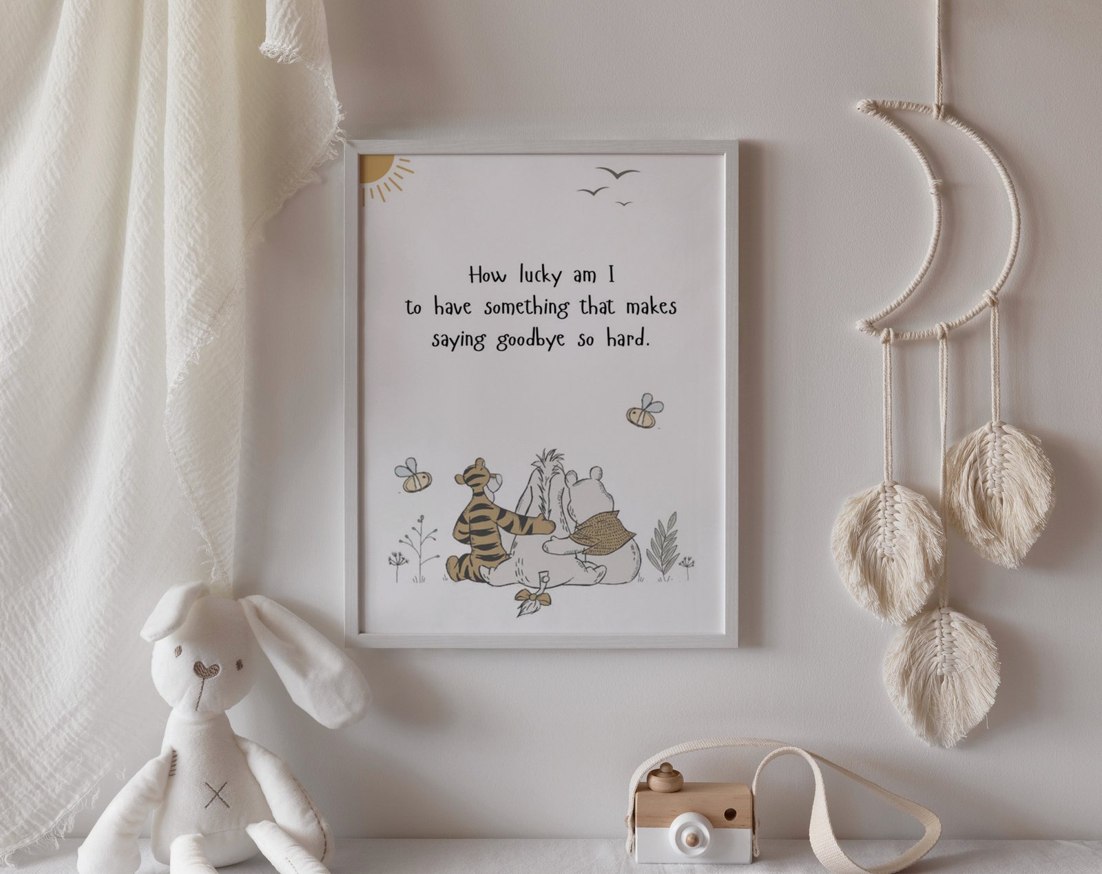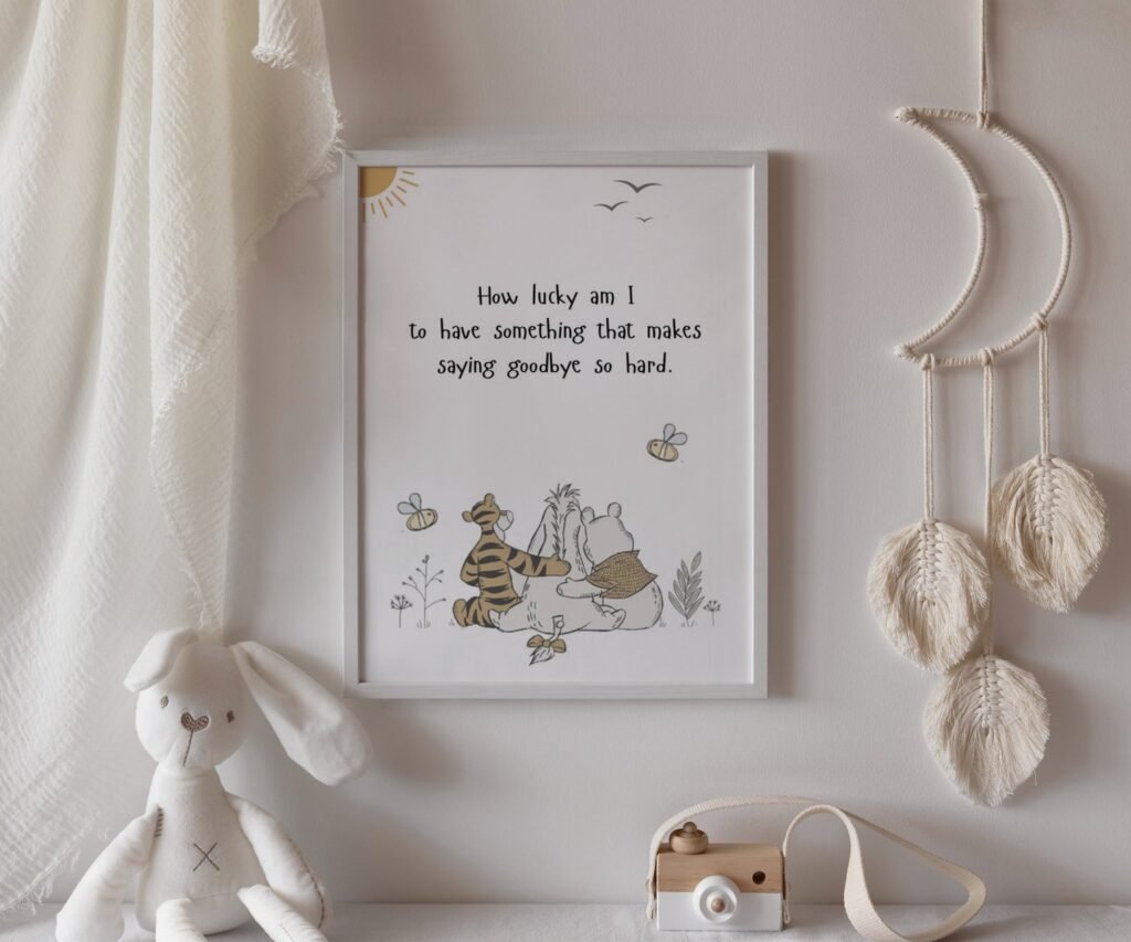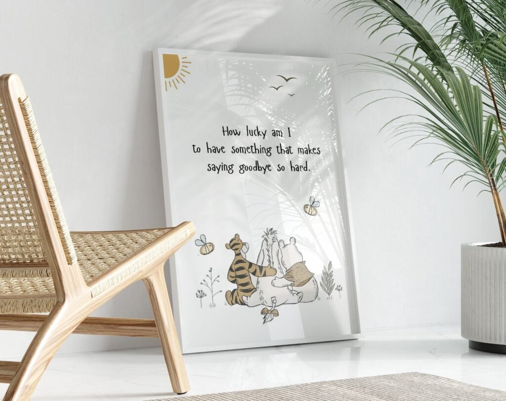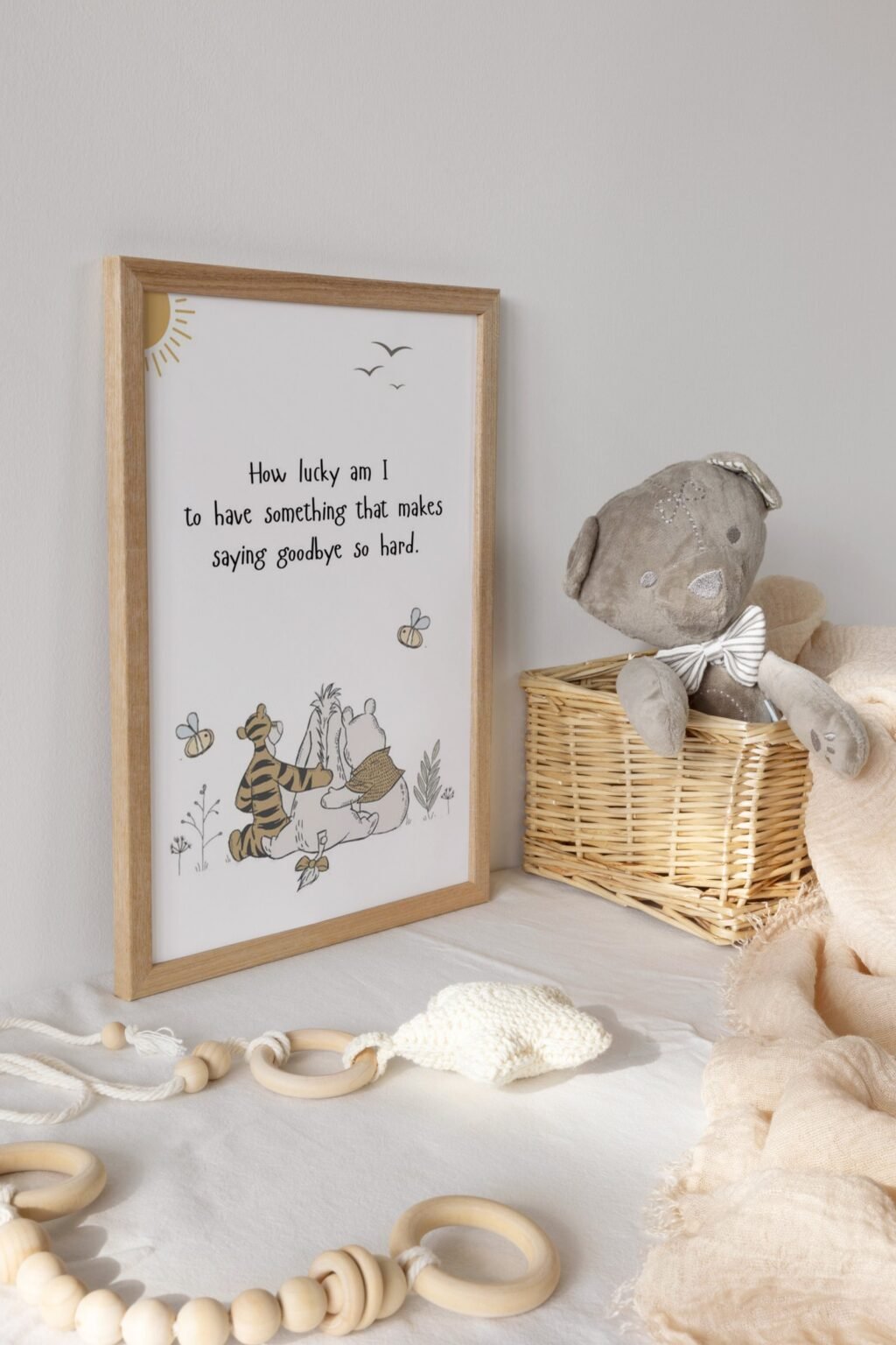 Our kids Quote Winnie the Pooh, set of 1, soothing colors, and heartwarming quotes that are bound to bring joy and comfort to your baby’s room. Each print is thoughtfully crafted to add a touch of magic and wonder, making it an ideal gift for new parents or a special treat for your own bundle of joy.