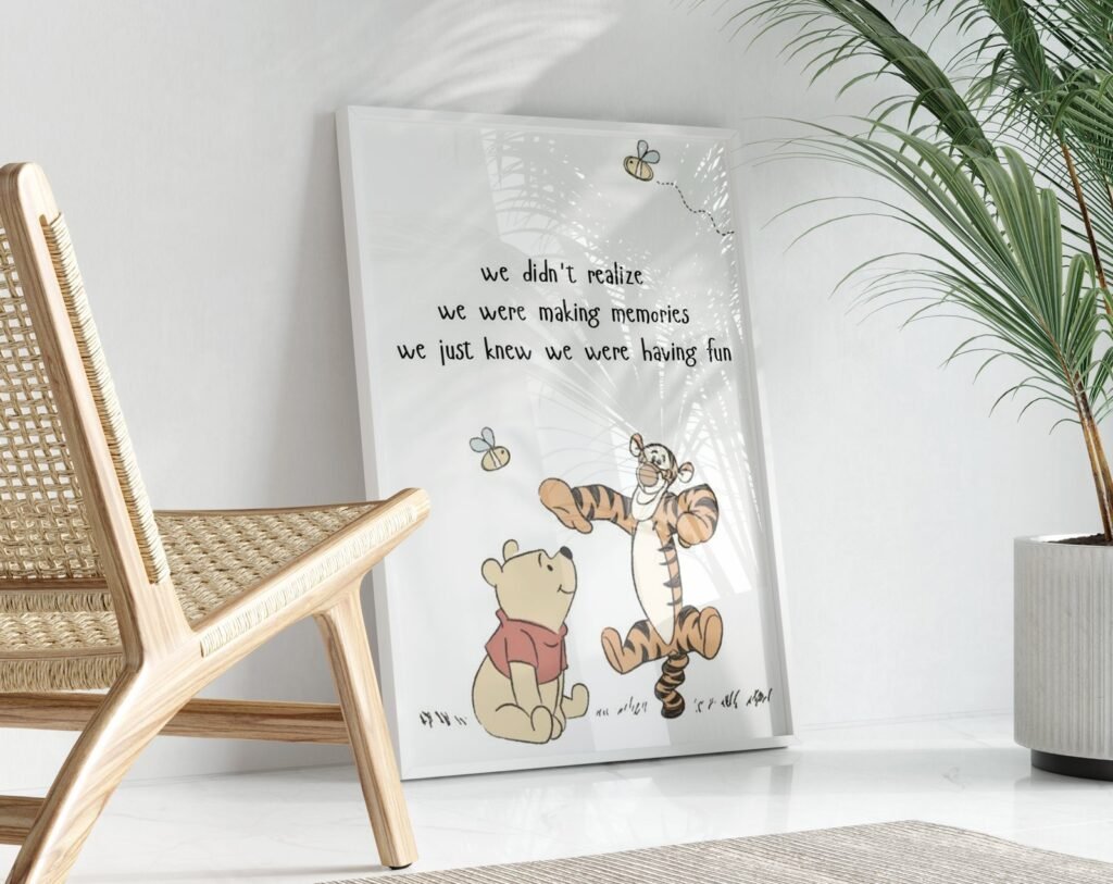 Our kids Quote Winnie the Pooh, set of 1, soothing colors, and heartwarming quotes that are bound to bring joy and comfort to your baby’s room. Each print is thoughtfully crafted to add a touch of magic and wonder, making it an ideal gift for new parents or a special treat for your own bundle of joy.