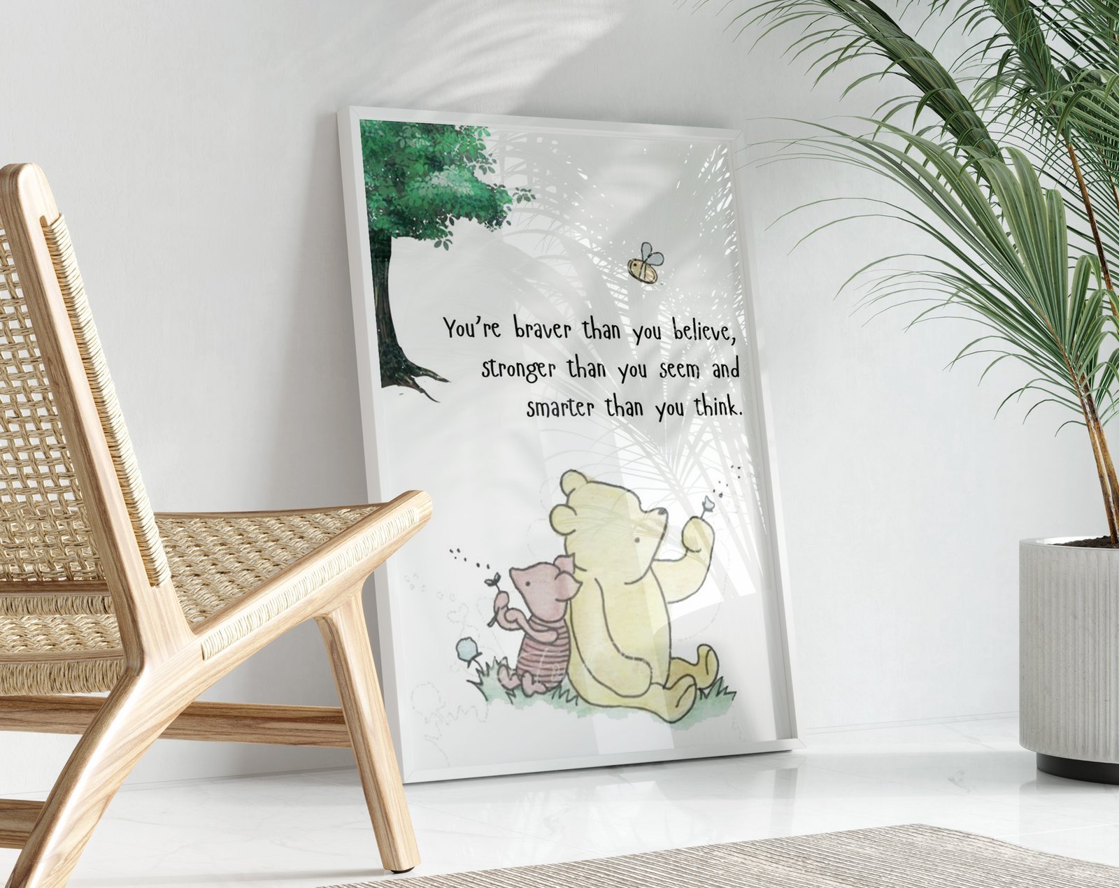 Our kids Quote Winnie the Pooh, set of 1, soothing colors, and heartwarming quotes that are bound to bring joy and comfort to your baby’s room. Each print is thoughtfully crafted to add a touch of magic and wonder, making it an ideal gift for new parents or a special treat for your own bundle of joy.
