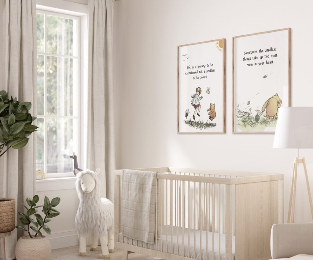 Our kids Quote Winnie the Pooh, set of 2, soothing colors, and heartwarming quotes that are bound to bring joy and comfort to your baby’s room. Each print is thoughtfully crafted to add a touch of magic and wonder, making it an ideal gift for new parents or a special treat for your own bundle of joy.