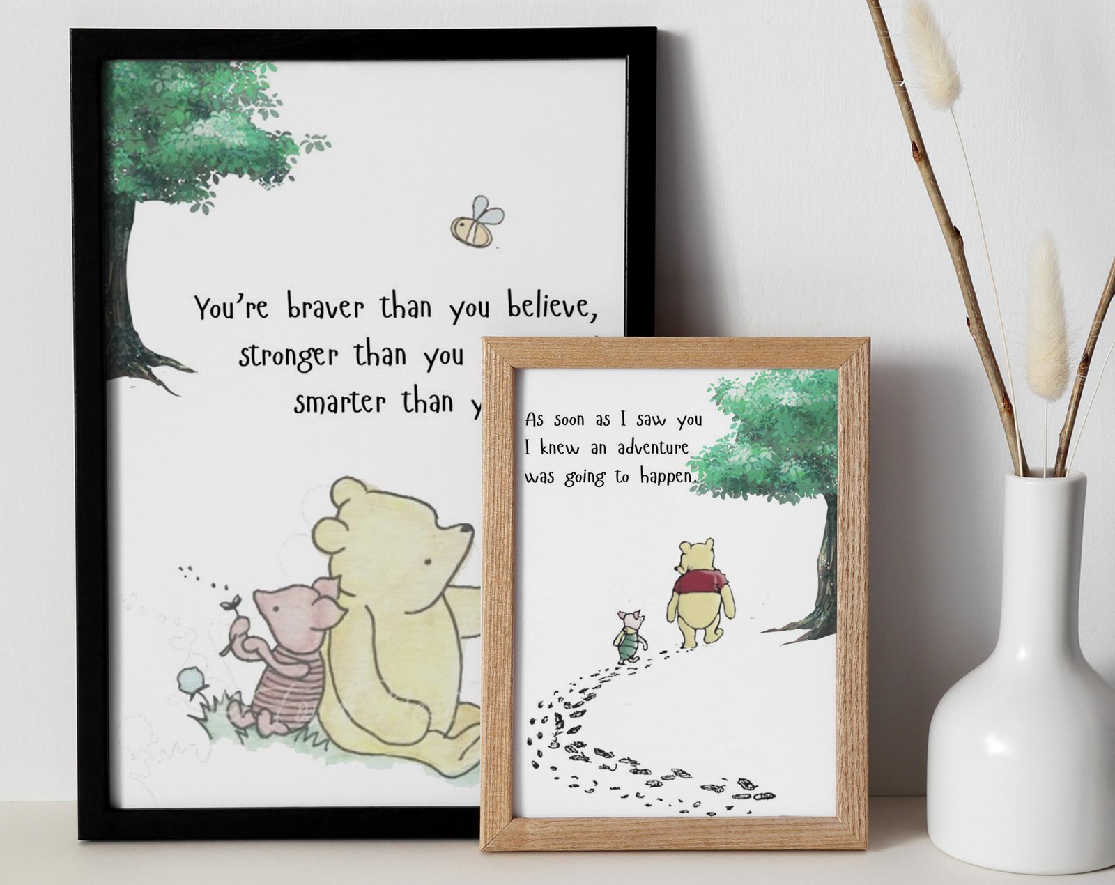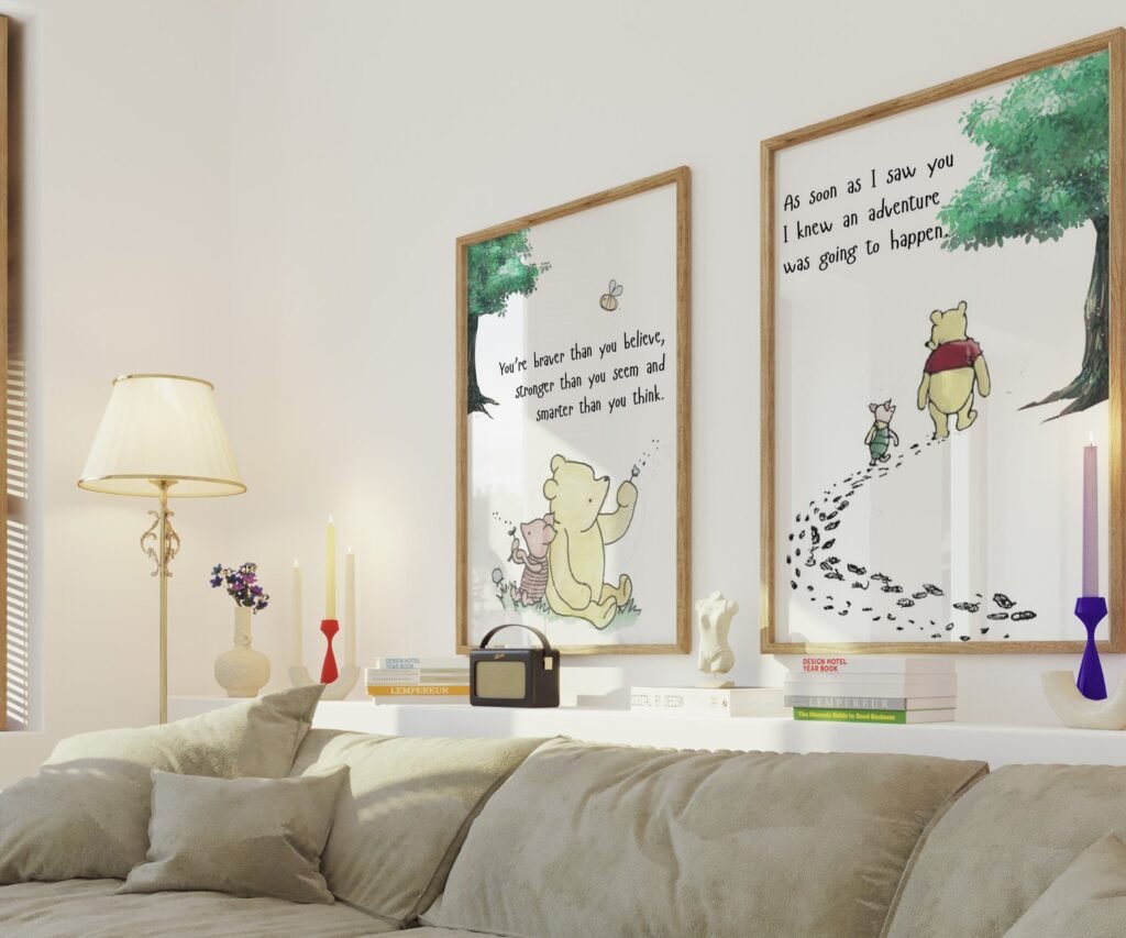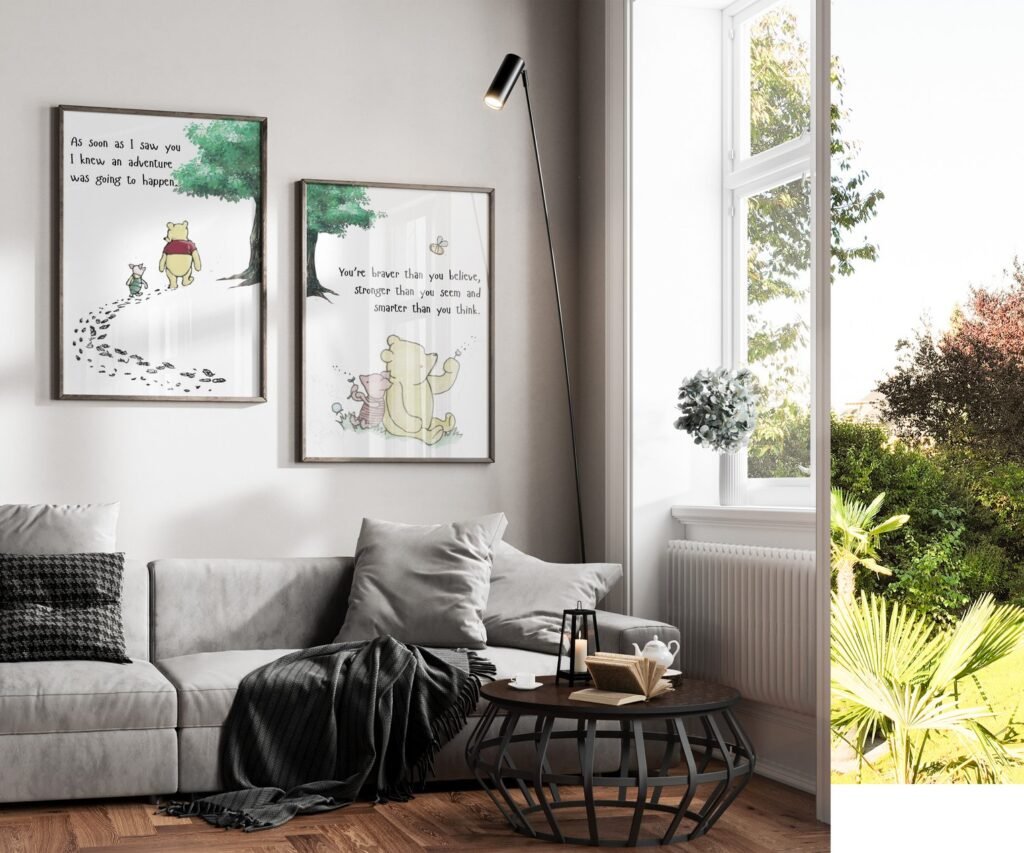 Our kids Quote Winnie the Pooh, set of 2, soothing colors, and heartwarming quotes that are bound to bring joy and comfort to your baby’s room. Each print is thoughtfully crafted to add a touch of magic and wonder, making it an ideal gift for new parents or a special treat for your own bundle of joy.