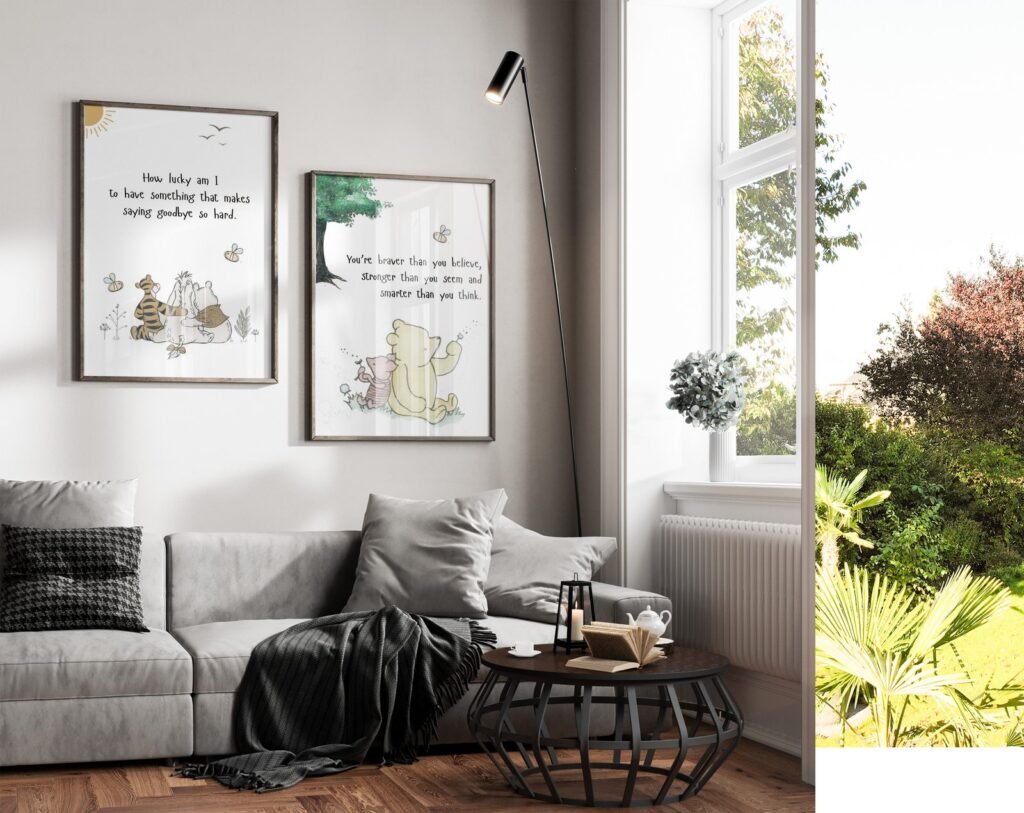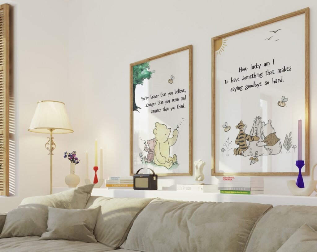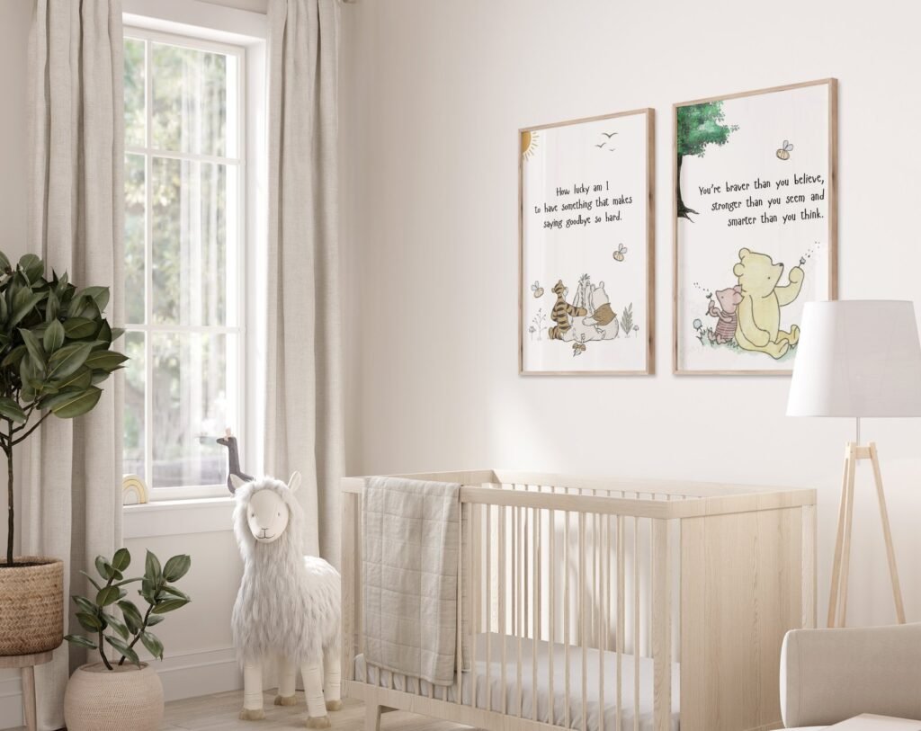 Our kids Quote Winnie the Pooh, set of 2, soothing colors, and heartwarming quotes that are bound to bring joy and comfort to your baby’s room. Each print is thoughtfully crafted to add a touch of magic and wonder, making it an ideal gift for new parents or a special treat for your own bundle of joy.