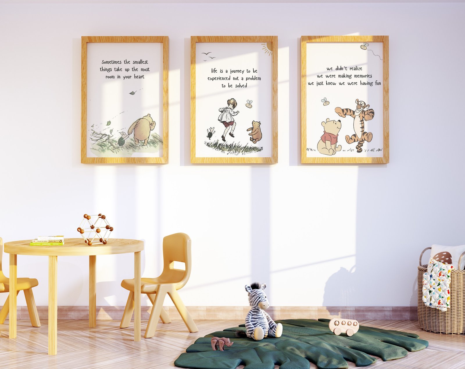 Our kids Quote Winnie the Pooh, set of 3, soothing colors, and heartwarming quotes that are bound to bring joy and comfort to your baby’s room. Each print is thoughtfully crafted to add a touch of magic and wonder, making it an ideal gift for new parents or a special treat for your own bundle of joy.