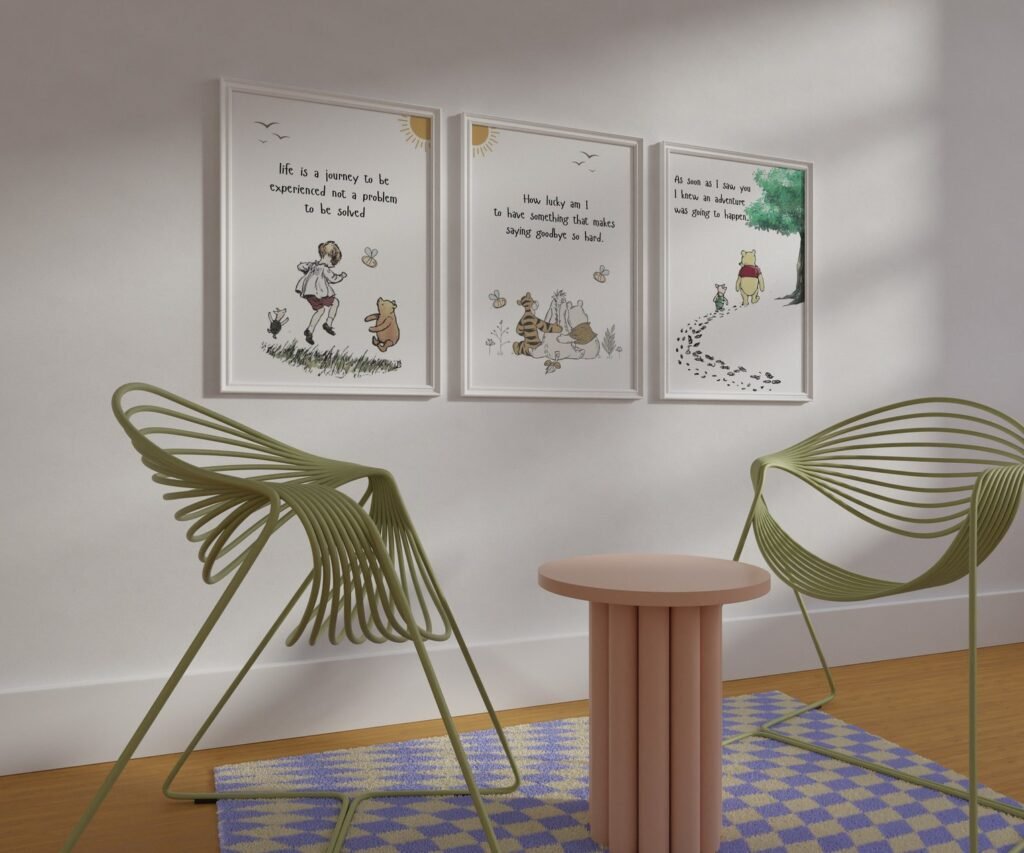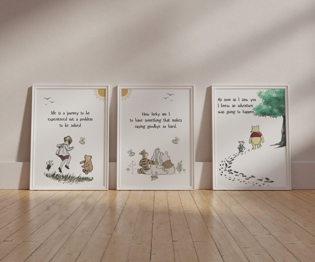 Our kids Quote Winnie the Pooh, set of 3, soothing colors, and heartwarming quotes that are bound to bring joy and comfort to your baby’s room. Each print is thoughtfully crafted to add a touch of magic and wonder, making it an ideal gift for new parents or a special treat for your own bundle of joy.