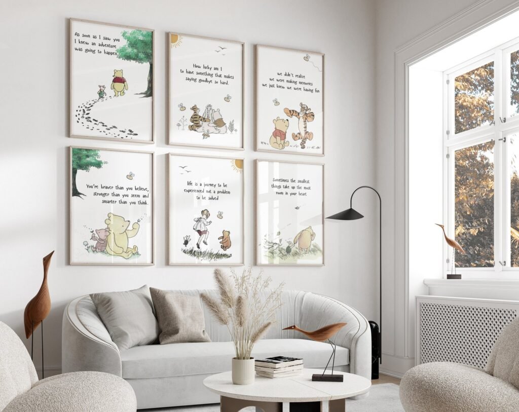 Our kids Quote Winnie the Pooh, set of 6, soothing colors, and heartwarming quotes that are bound to bring joy and comfort to your baby’s room. Each print is thoughtfully crafted to add a touch of magic and wonder, making it an ideal gift for new parents or a special treat for your own bundle of joy.
