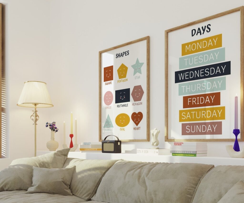 Our Kids Wall Art, Children’s Wall Art, Nursery set of 2 Prints, Educational Wall Art, Alphabet, Numbers, Colours, Shapes , Classroom print, soothing colors, and heartwarming quotes that are bound to bring joy and comfort to your baby’s room. Each print is thoughtfully crafted to add a touch of magic and wonder, making it an ideal gift for new parents or a special treat for your own bundle of joy.