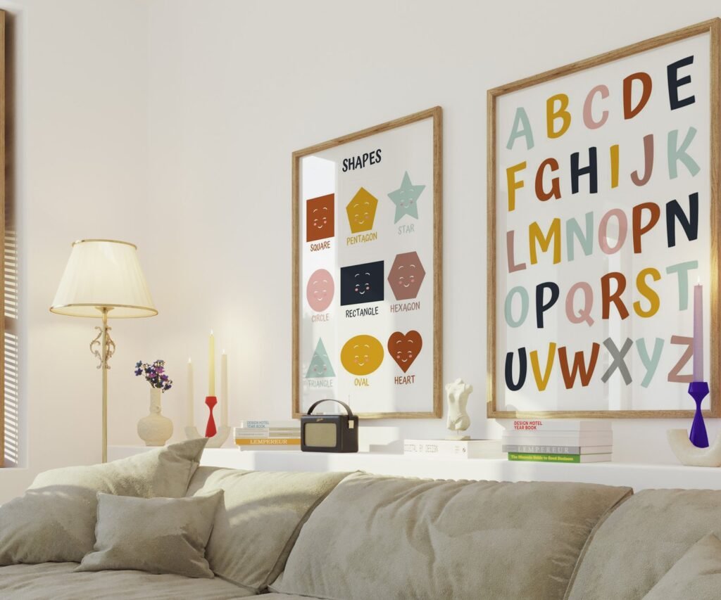 Our Kids Wall Art, Children’s Wall Art, Nursery set of 2 Prints, Educational Wall Art, Alphabet, Numbers, Colours, Shapes , Classroom print, soothing colors, and heartwarming quotes that are bound to bring joy and comfort to your baby’s room. Each print is thoughtfully crafted to add a touch of magic and wonder, making it an ideal gift for new parents or a special treat for your own bundle of joy.