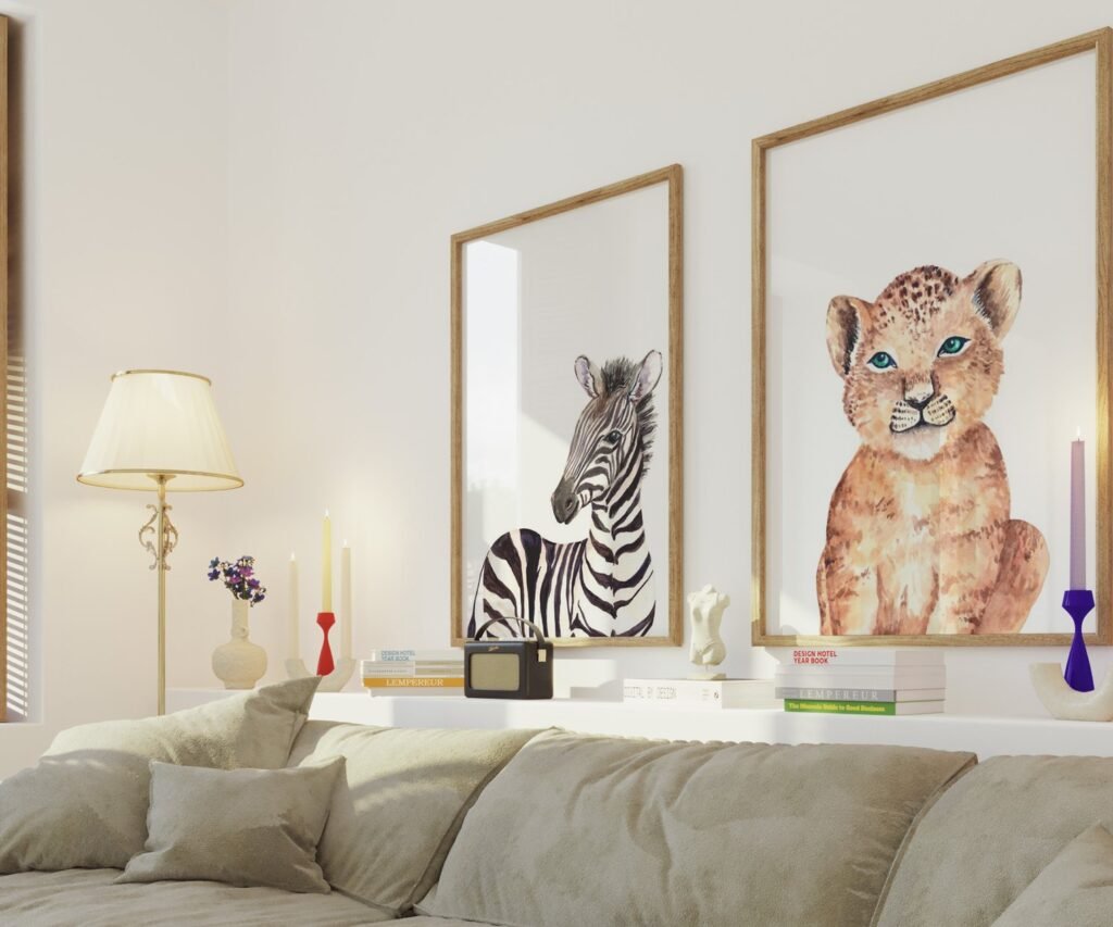 Our Lion tiger monkey giraffe elephant set of 2, Woodland Baby Animal Posters, soothing colors, and heartwarming quotes that are bound to bring joy and comfort to your baby’s room. Each print is thoughtfully crafted to add a touch of magic and wonder, making it an ideal gift for new parents or a special treat for your own bundle of joy.