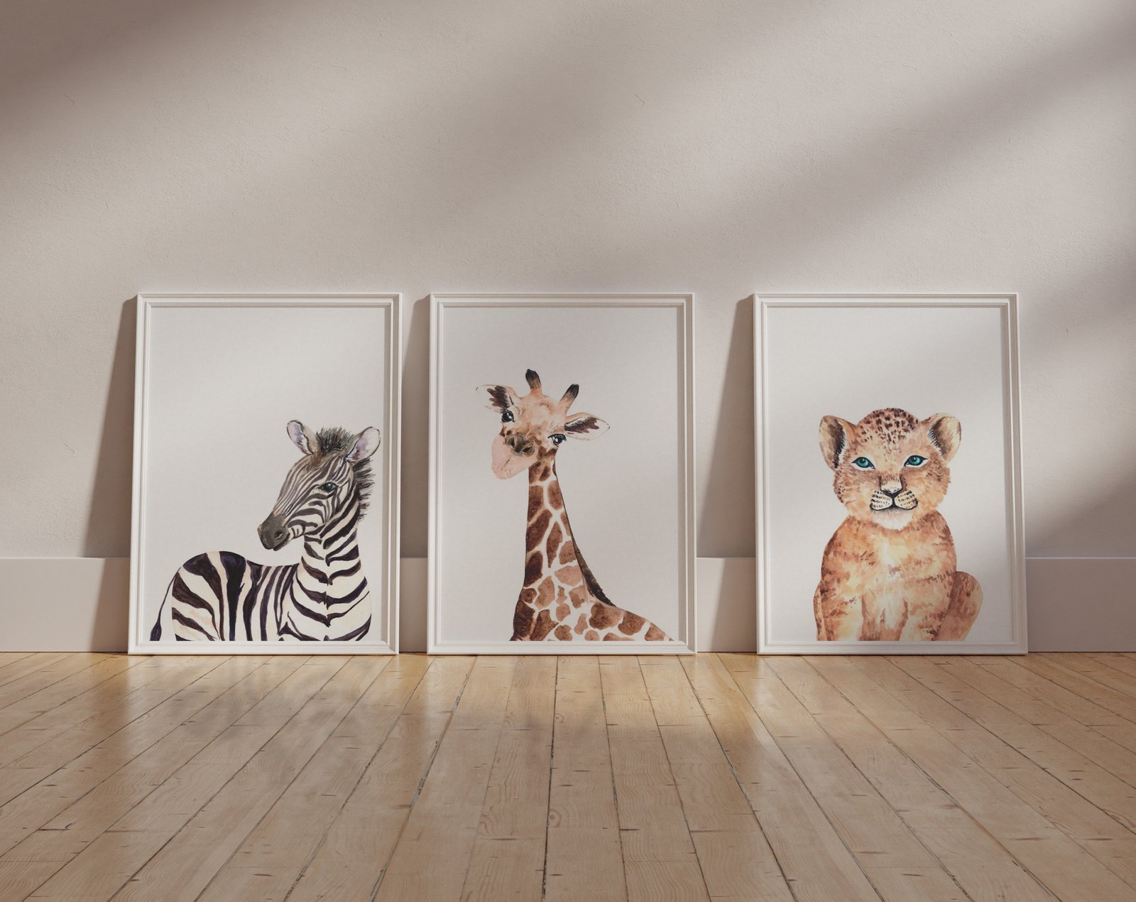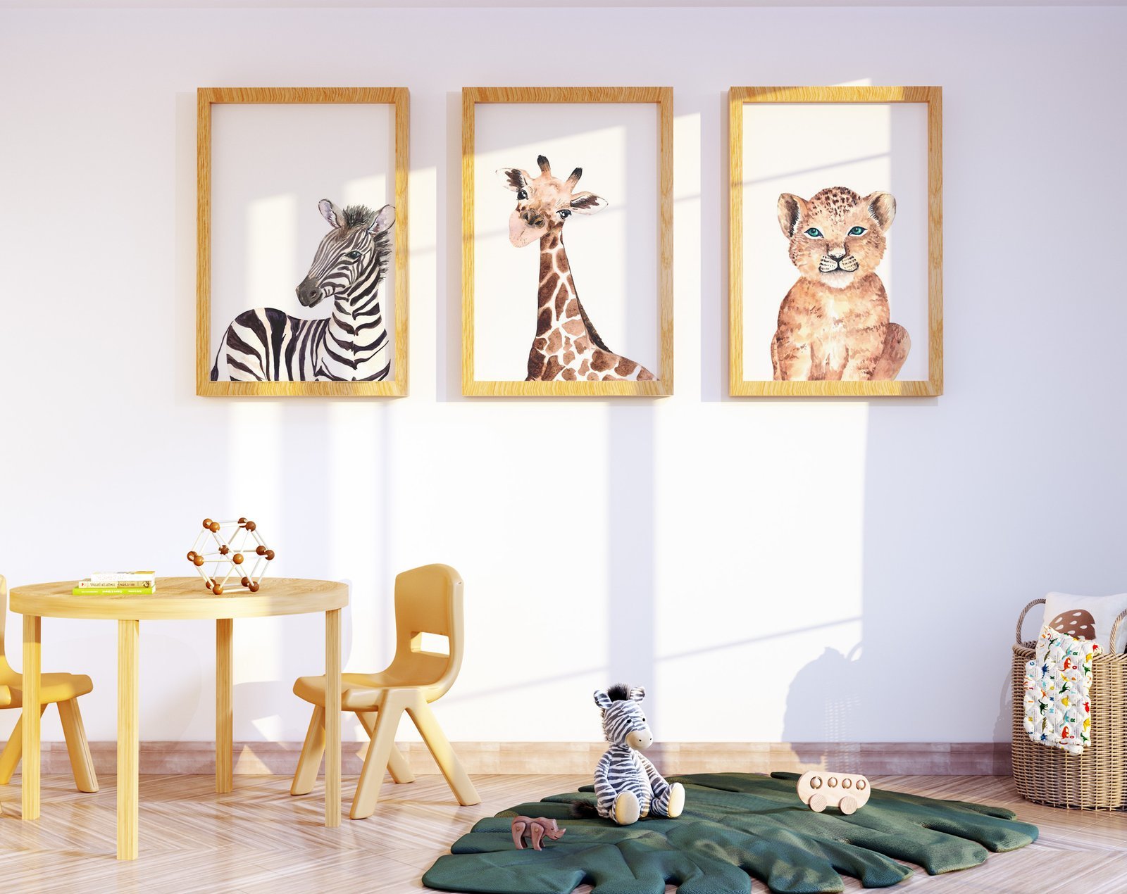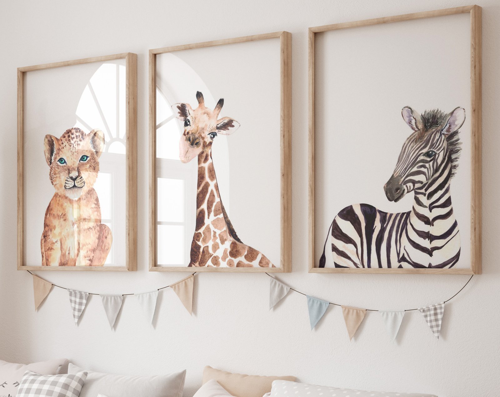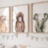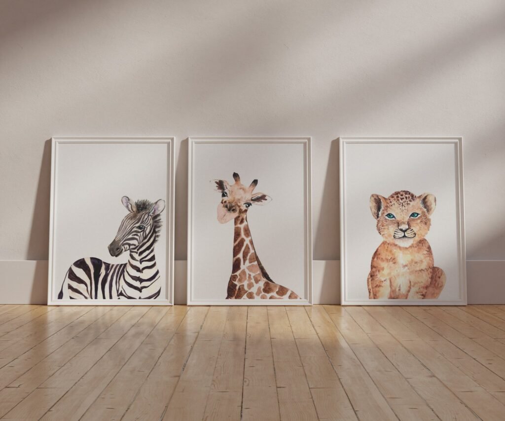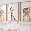 Our Lion tiger monkey giraffe elephant set of 3, Woodland Baby Animal Posters, soothing colors, and heartwarming quotes that are bound to bring joy and comfort to your baby’s room. Each print is thoughtfully crafted to add a touch of magic and wonder, making it an ideal gift for new parents or a special treat for your own bundle of joy.