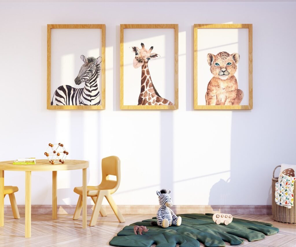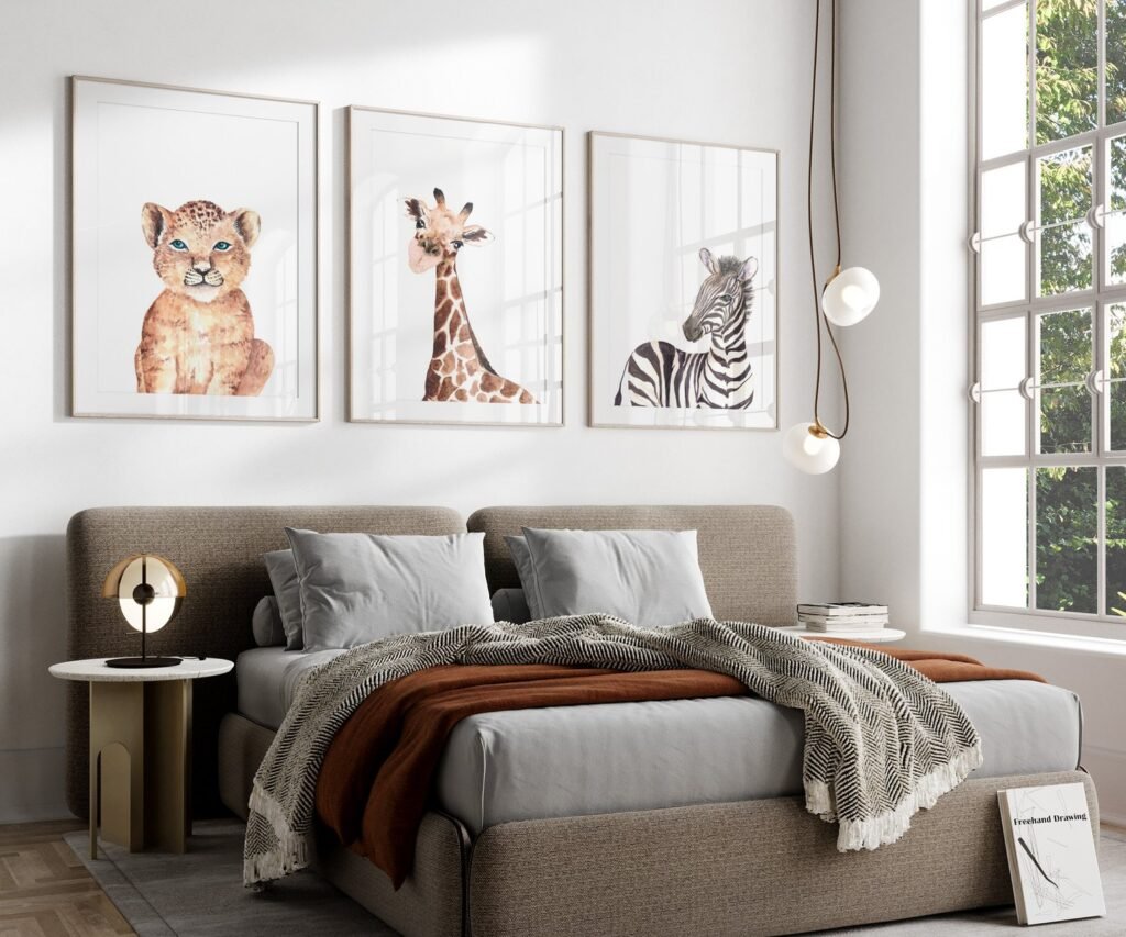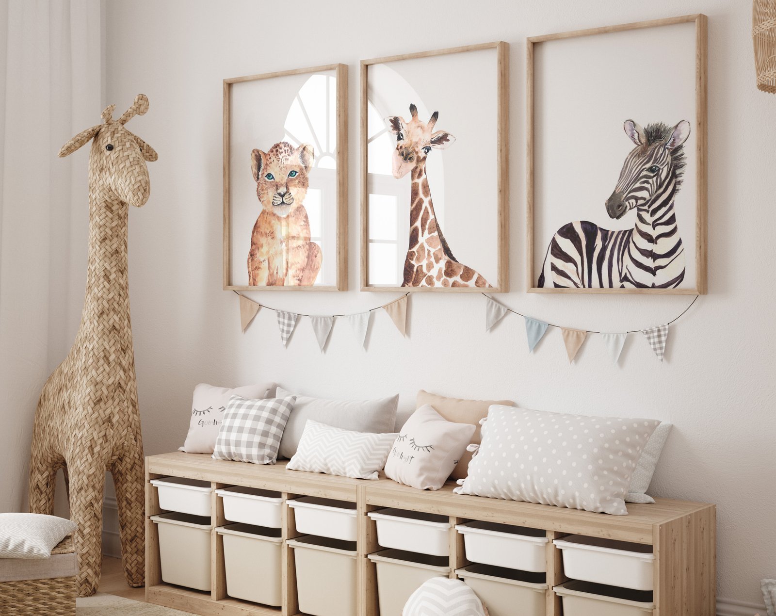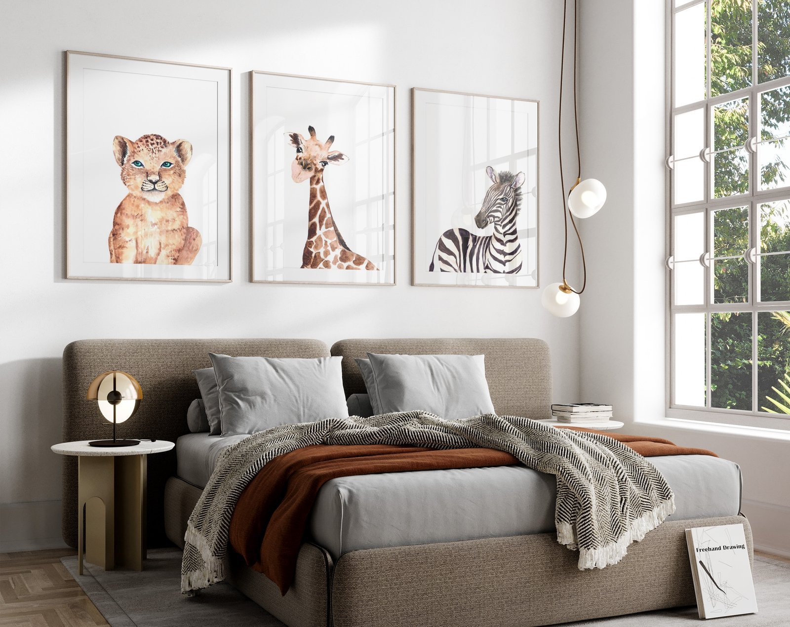 Our Lion tiger monkey giraffe elephant set of 3, Woodland Baby Animal Posters, soothing colors, and heartwarming quotes that are bound to bring joy and comfort to your baby’s room. Each print is thoughtfully crafted to add a touch of magic and wonder, making it an ideal gift for new parents or a special treat for your own bundle of joy.