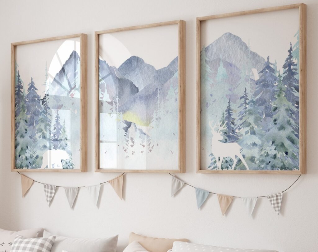 Our mountain, tree nursery adventure forest, sage green, woodland animals set of 3, soothing colors, and heartwarming quotes that are bound to bring joy and comfort to your baby’s room. Each print is thoughtfully crafted to add a touch of magic and wonder, making it an ideal gift for new parents or a special treat for your own bundle of joy.