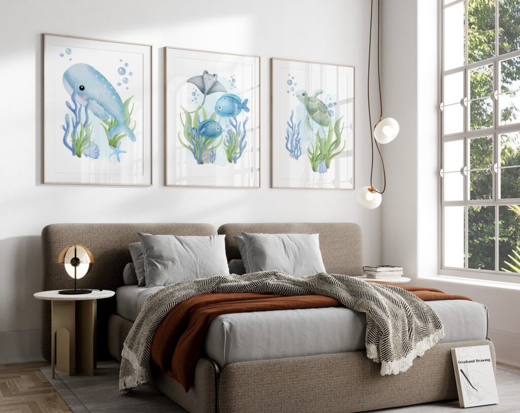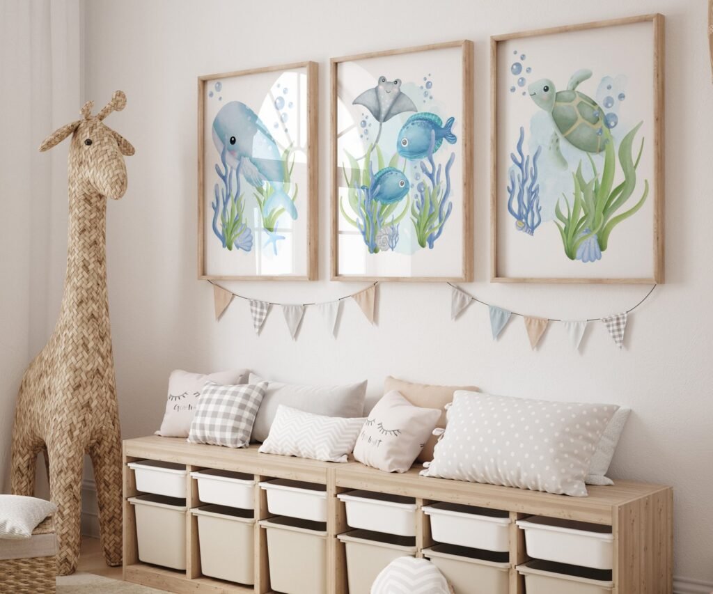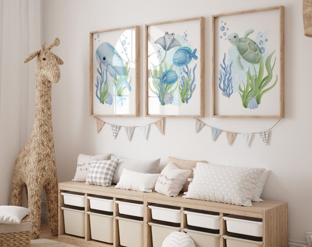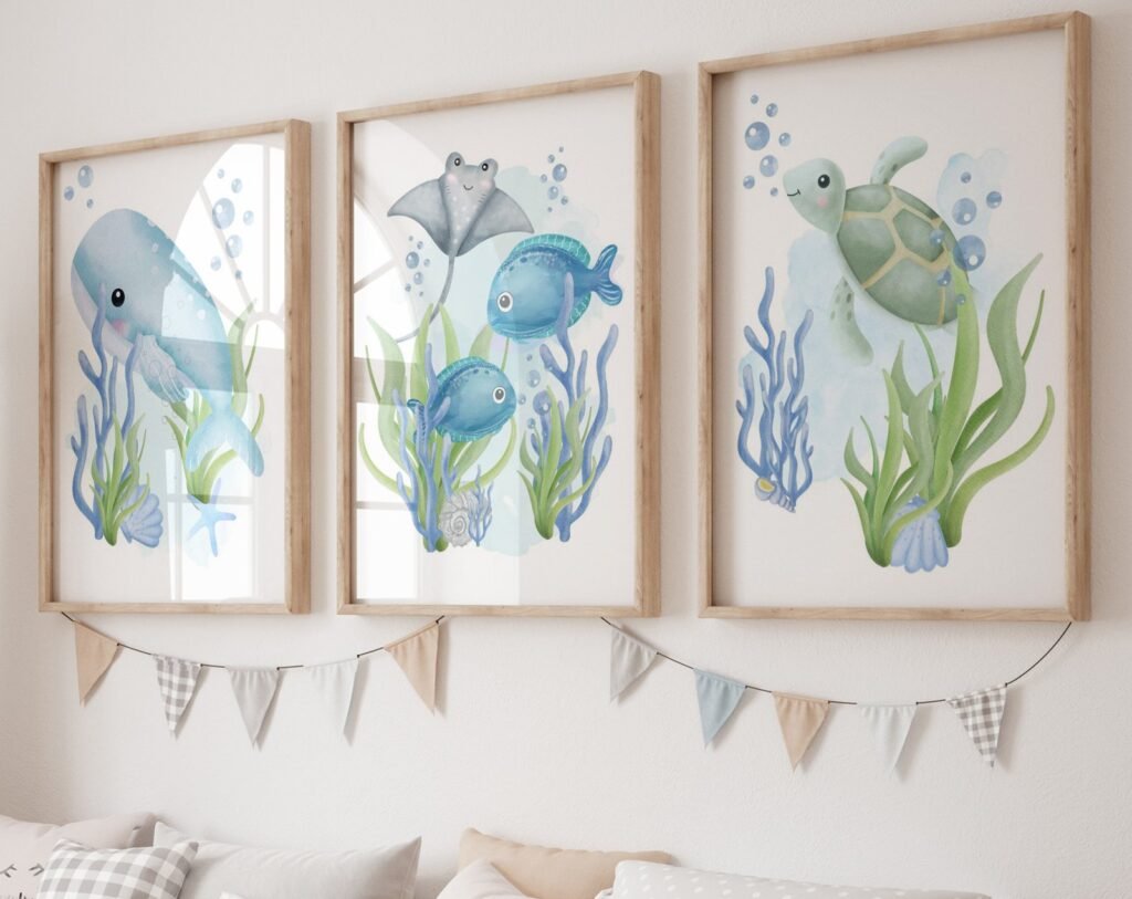 Our Nautical nursery, Ocean nursery decor, under the sea nursery set of 3, soothing colors, and heartwarming quotes that are bound to bring joy and comfort to your baby’s room. Each print is thoughtfully crafted to add a touch of magic and wonder, making it an ideal gift for new parents or a special treat for your own bundle of joy.