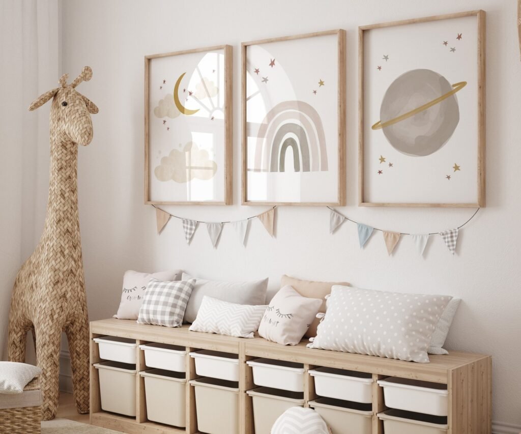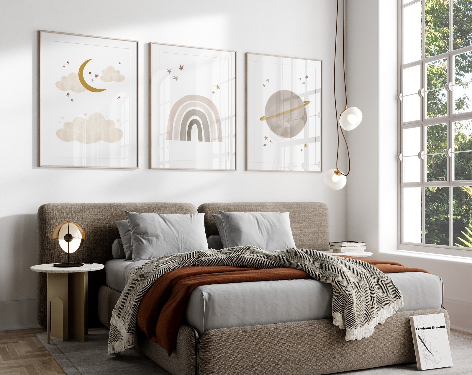 Our Neutral Nursery Print set of 3, Space, Earthy Tones, Planet, soothing colors, and heartwarming quotes that are bound to bring joy and comfort to your baby’s room. Each print is thoughtfully crafted to add a touch of magic and wonder, making it an ideal gift for new parents or a special treat for your own bundle of joy.